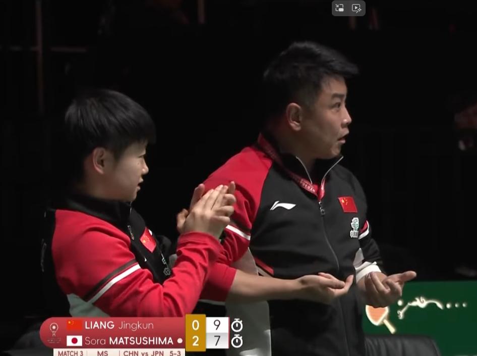 我去!梁靖崑1:2爆冷输给了松岛辉空。 第一局松岛辉空11:9胜了大胖 第二局松岛辉空11:8胜了大胖, 第三局大胖开始搏杀, 3:1开局,7:4领先 没想到又被松岛辉空7:7追上了, 如果再输一局, 大胖就被人零封了。 关键时刻大胖顶住了压力, 连赢4球, 11:7拿下, 为国乒凑了1分。 目前国乒总积分6:3领先