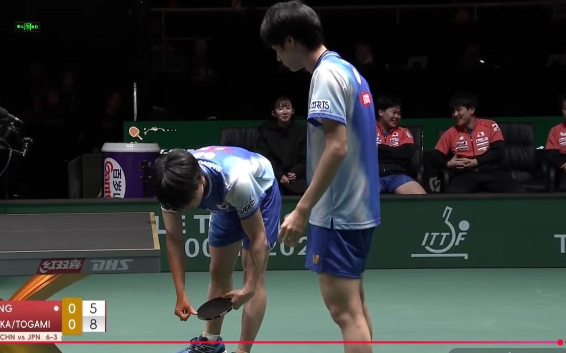 坏了!王楚钦/林诗栋难打了! 户上/大登作为多哈世乒赛男双冠军, 果然不是花架子。 第一局 王楚钦/林诗栋2:0开局, 4:2领先, 但是被户上/大登连赢4球, 6:4逆转。 之后户上/大登一路领先, 10:6拿到局点, 11:7拿下。 日本男双组合配合确实好, 而且两人打法凶悍, 对于咱们得发球, 他们直接拧拉, 王楚钦/林诗栋压力大了。