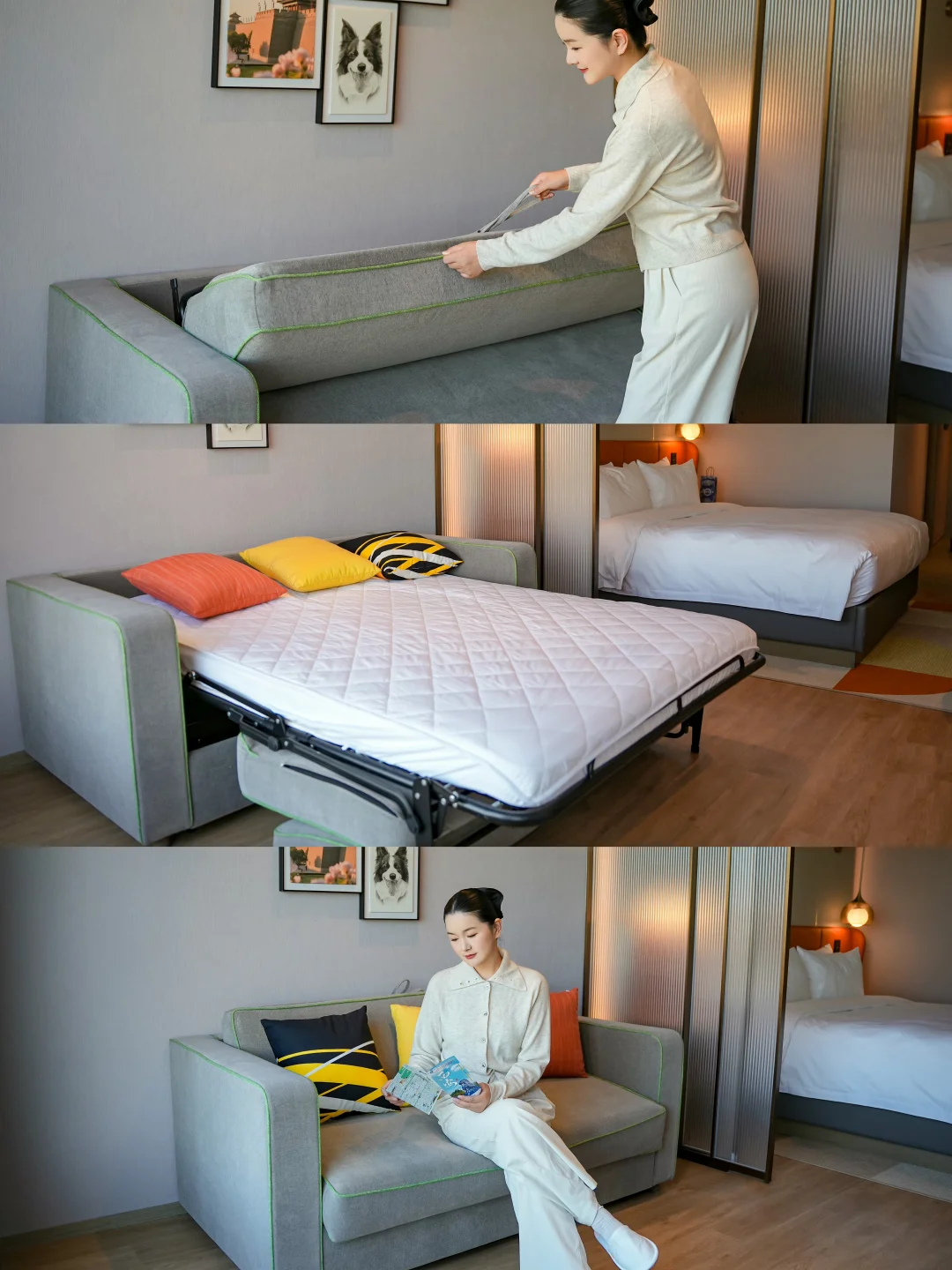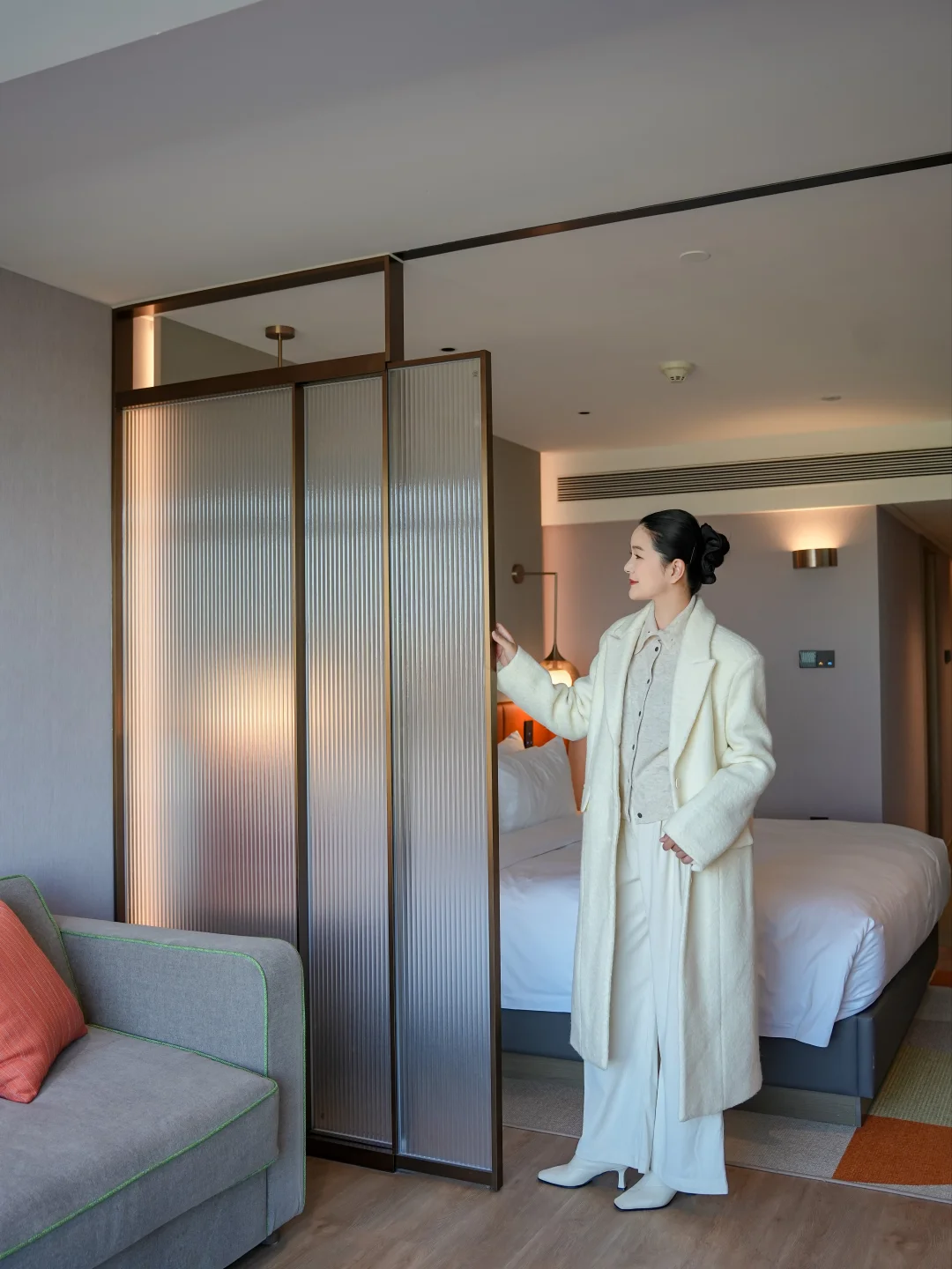 拉开🉑️滑动屏风瞬间分隔开会客区和休息区