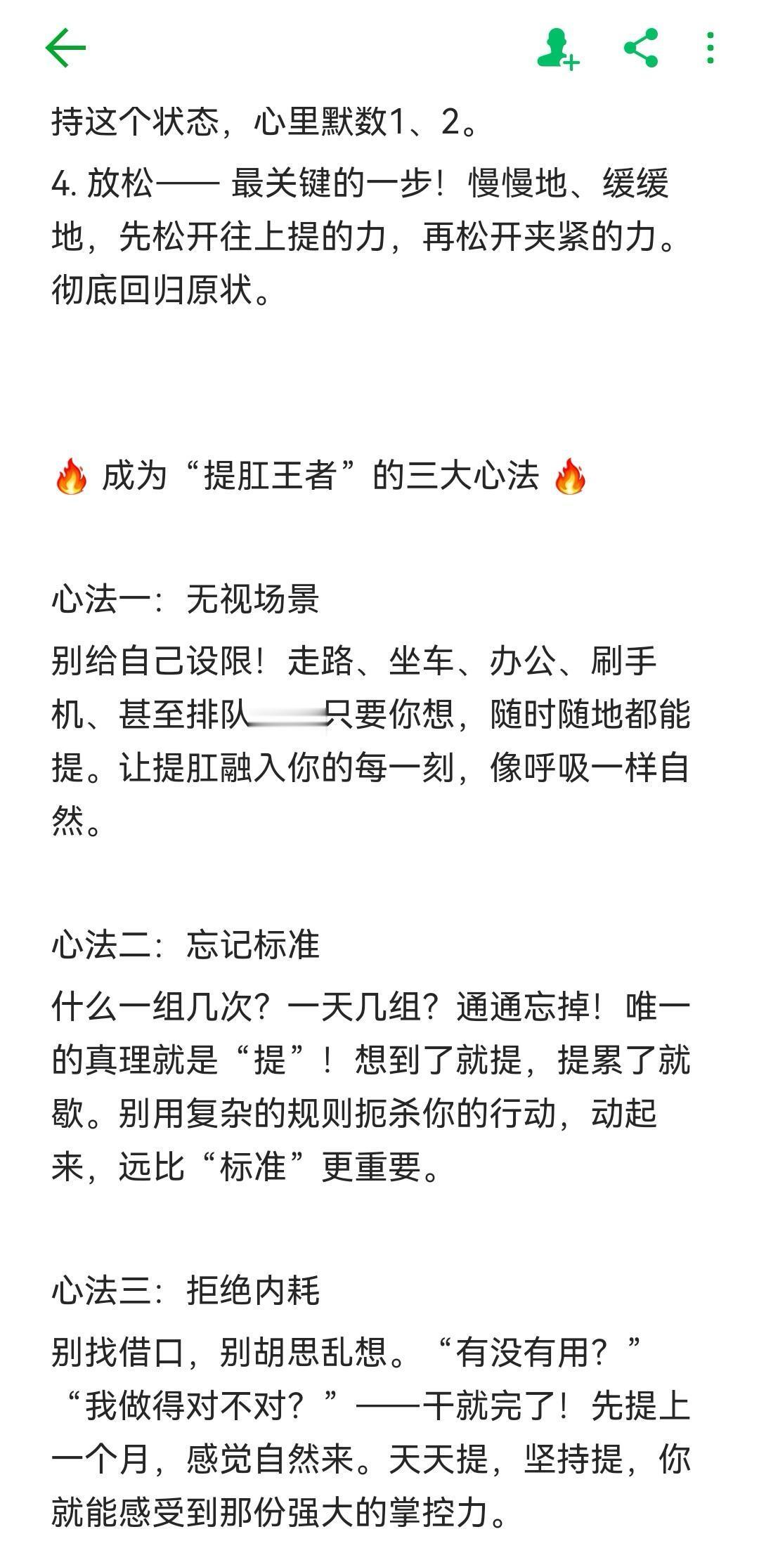 咬牙!提肛!你就是自己的王!别再把时间浪费在复杂又无效的方法上了!这才是真正简单粗暴、效果炸裂的提肛运动。全网最简单,照着做就行,直接开启你的“王者”之路。核心秘诀,就四步:1. 咬牙—— 门牙对上门牙,后槽牙对上后槽牙,咬住!这是你发力的开关。2. 提肛—— 肛门猛地一紧,像要夹断什么东西!紧接着,用股劲儿把它往肚子里提!记住顺序:一紧,再一提!3. 持续—— 提到顶,提不进去了?好,就保持这个状态,心里默数1、2。4. 放松—— 最关键的一步!慢慢地、缓缓地,先松开往上提的力,再松开夹紧的力。彻底回归原状。🔥 成为“提肛王者”的三大心法 🔥心法一:无视场景别给自己设限!走路、坐车、办公、刷手机、甚至排队……只要你想,随时随地都能提。让提肛融入你的每一刻,像呼吸一样自然。心法二:忘记标准什么一组几次?一天几组?通通忘掉!唯一的真理就是“提”!想到了就提,提累了就歇。别用复杂的规则扼杀你的行动,动起来,远比“标准”更重要。心法三:拒绝内耗别找借口,别胡思乱想。“有没有用?”“我做得对不对?”——干就完了!先提上一个月,感觉自然来。天天提,坚持提,你就能感受到那份强大的掌控力。提肛健康养生中医养生