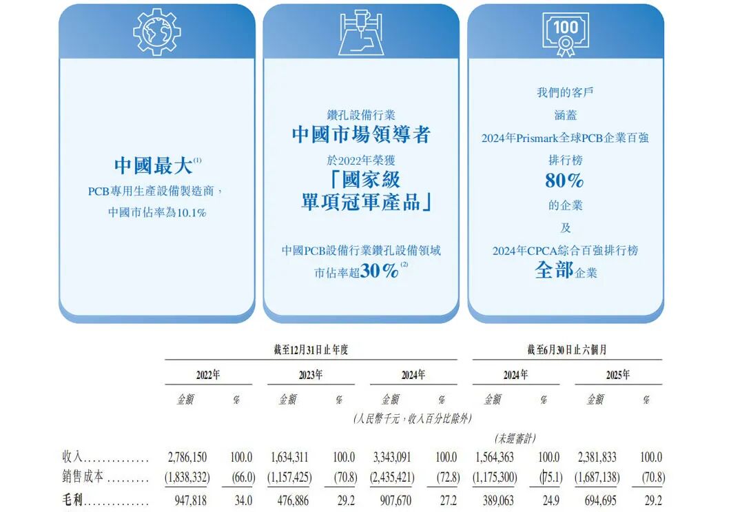 招股书称,其是中国最大PCB专用生产设备制造商,市占率为10.1%。1-9月,其收入达39亿元,同比增加66.5%。