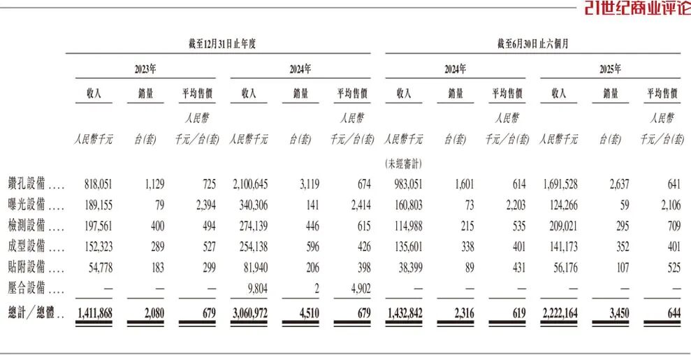 高云峰和大族数控,尤为擅长制作“钻孔”设备,2025年1-6月,以每台64万的价格,售出2637台,入账16.9亿元,贡献近八成收入。