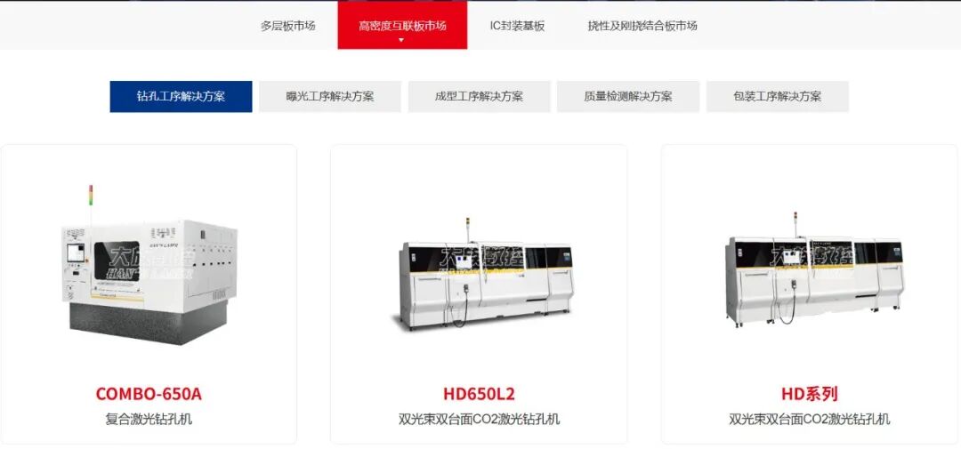 其推出CO2激光钻孔机、UV激光钻孔机等产品,已获得PCB龙头厂商,如臻鼎科技、欣兴电子、胜宏科技等客户认可。