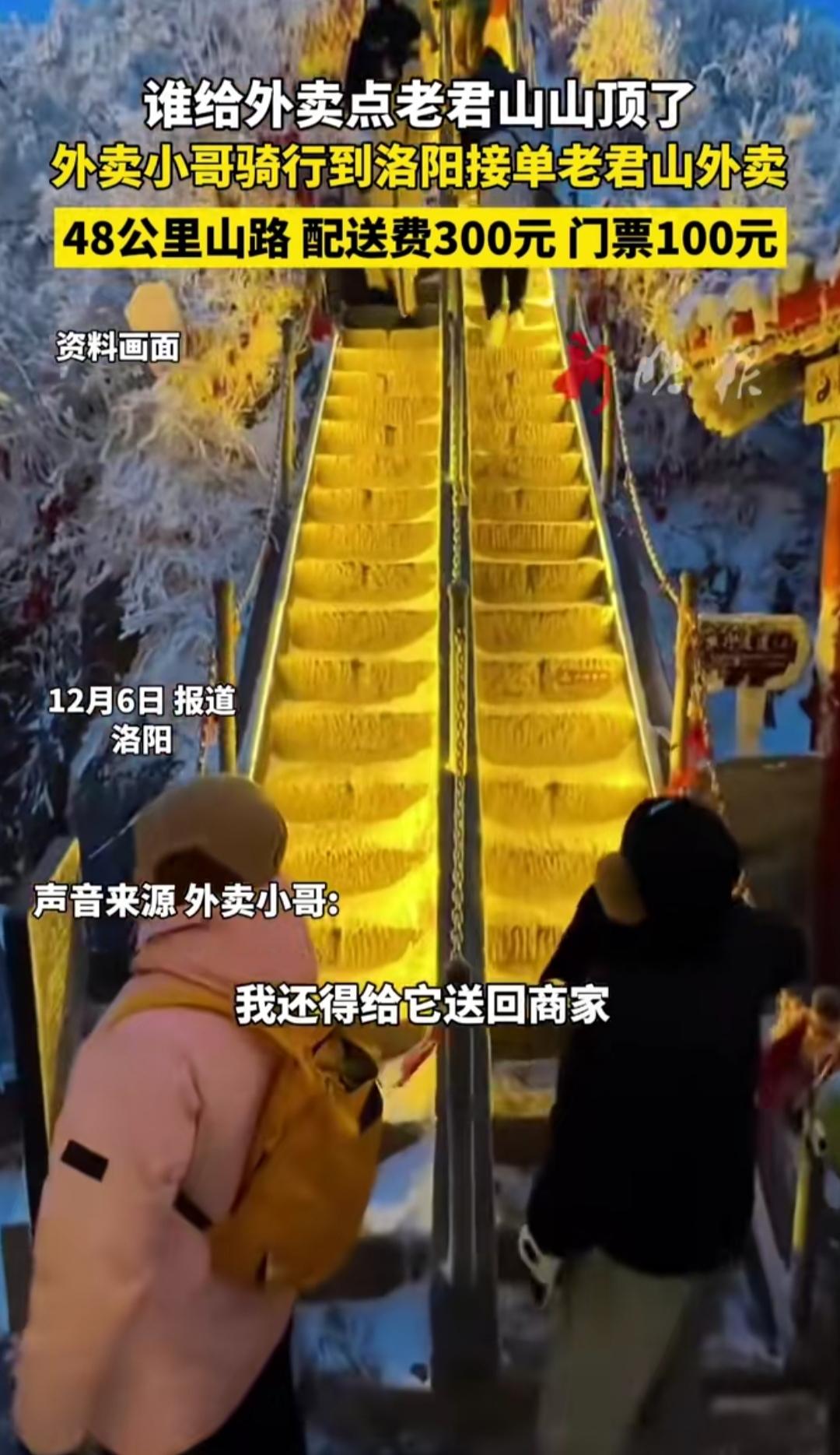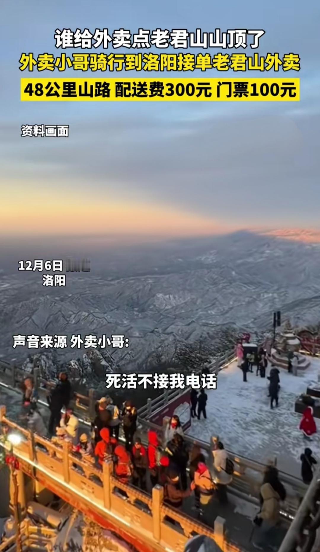 求求别再让外卖小哥“翻山越岭”了!洛阳这位骑行环游的小哥,为300元配送费接了老君山金顶的单,自掏100元买门票,爬40分钟1800级70度陡坡,到顶才发现顾客可能在另一山头。 他哪知道这单这么“折腾”?背着10斤重的火锅配料和啤酒,手抓铁链往上挪,膝盖顶得生疼,喘得话都说不全。挑山工背70斤货上山都要歇5次,他没专业装备,全靠体力硬撑,满脑子就盼着赶紧交差。 可到了海拔2217米的金顶,电话因信号差打不通,问遍游客也没人认单——后来才知道,顾客可能误填了地址,却早早结了单。小哥只能提着没送出去的餐品下山,扣掉门票净赚200元,腿酸得两天走不了路。 游客图新鲜的一单,却是小哥拼尽全力的奔波。山顶物价高有挑山工的生计在,可别让外卖员替任性买单。真希望下次,靠谱能比“新鲜”先被想起。