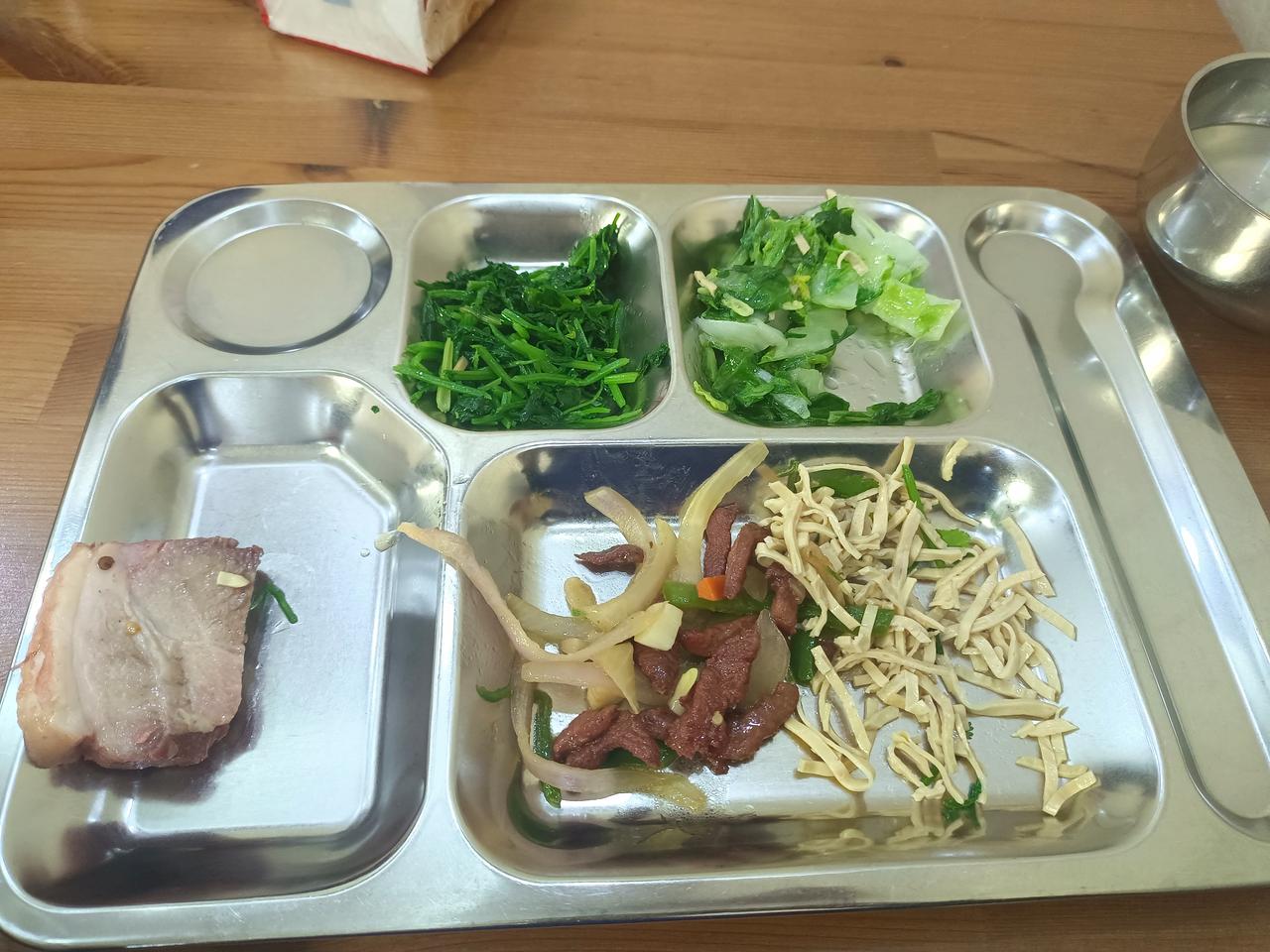 五六年没跑步了,油腻中年大叔。夜跑第四天,4.8公里。中餐和晚餐。早餐忘拍了。跑