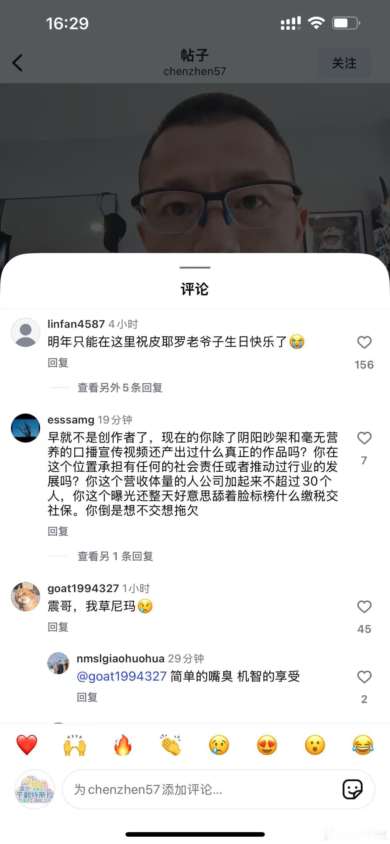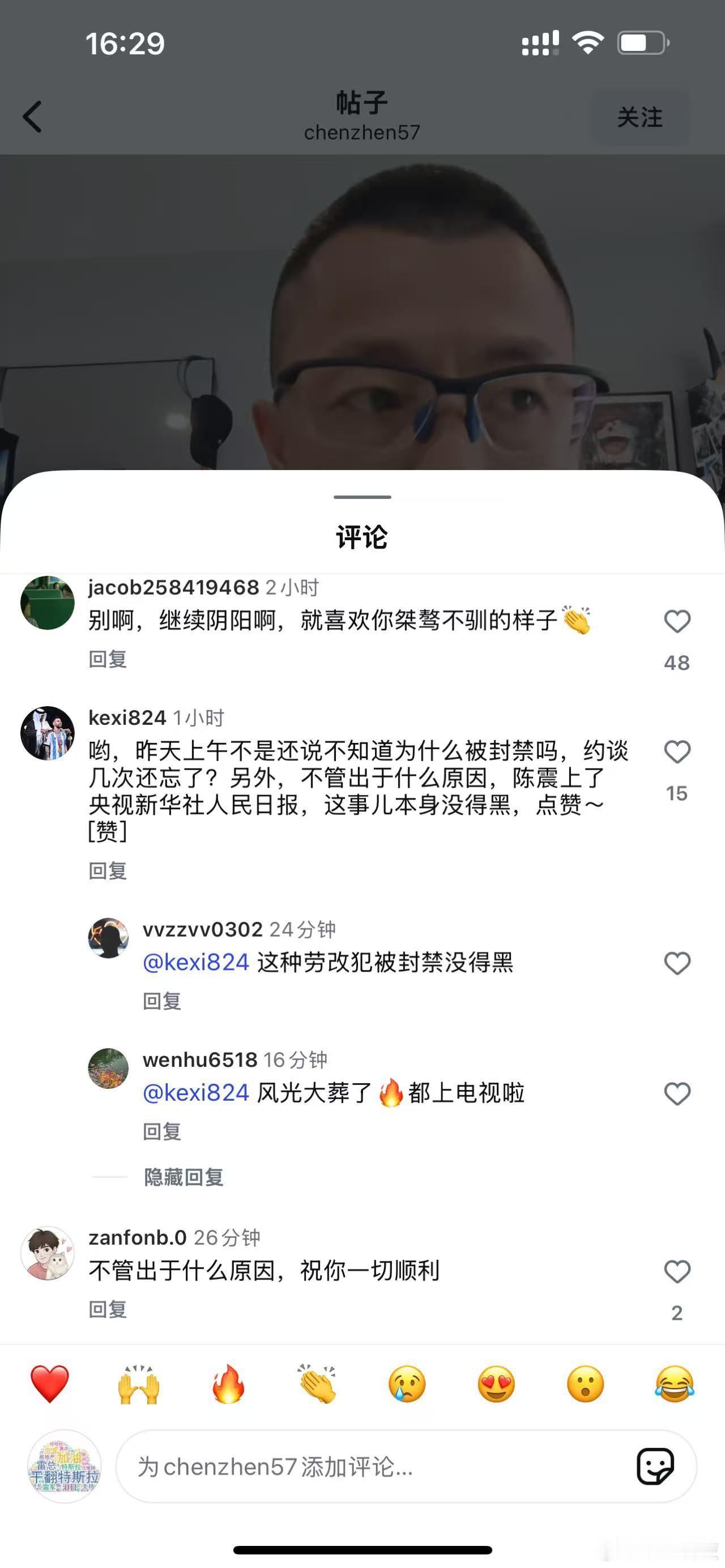 网传陈震在海外平台发布内容了,结果有网友去看了下评论区,直接绷不住了在这个节骨眼