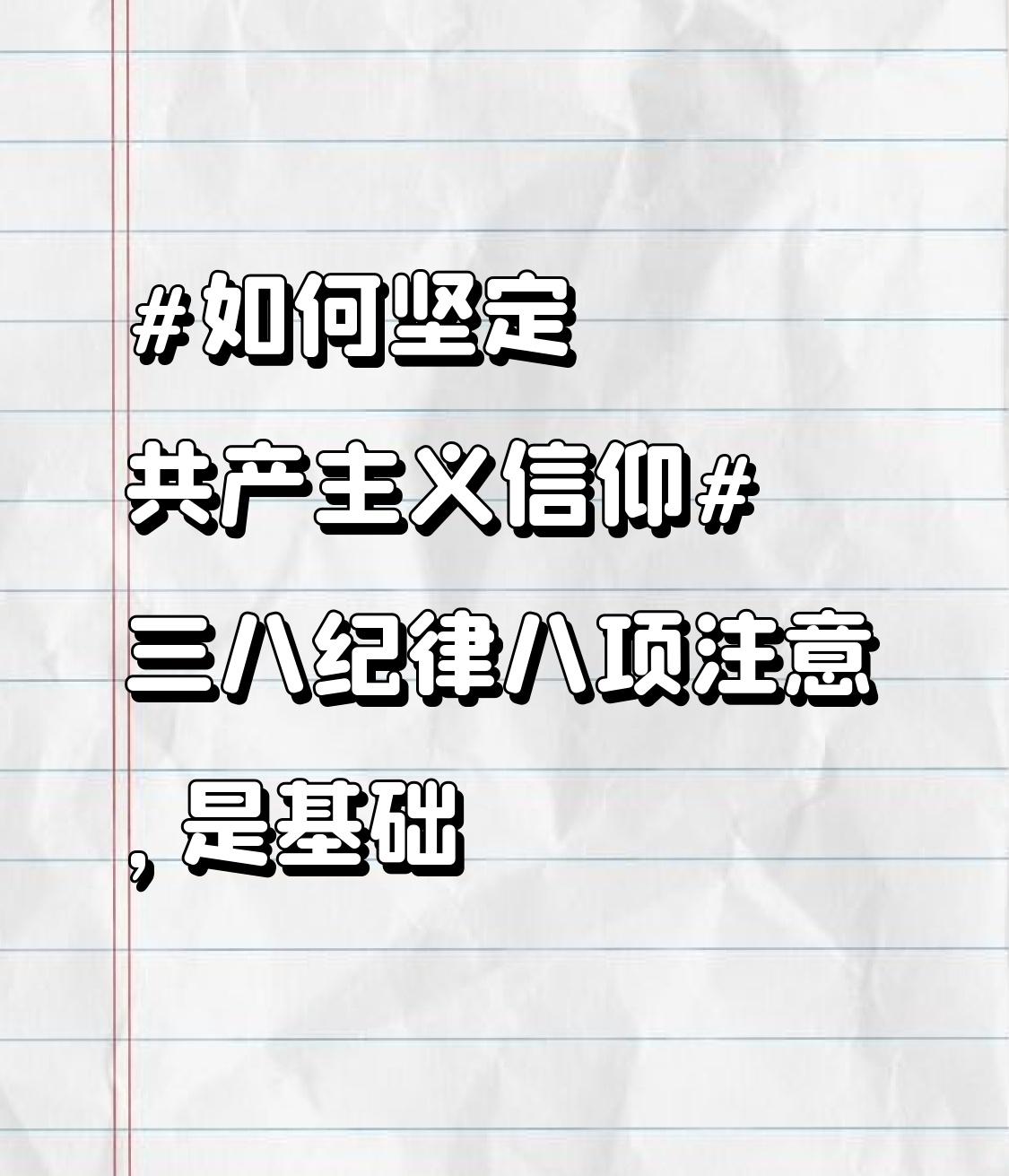 坚定共产主义信仰,“三大纪律八项注意”确实是基础。1947年毛泽东为解放军总部起草相关训令,这一准则早已有之。自建军始,解放军就重视革命纪律,“三大纪律八项注意”前身“三大纪律六项注意”的包袱皮至今陈列在军博。 如今全党开展贯彻中央八项规定精神学习教育,抓作风建设要坚定理想信念。对马克思主义的信仰等是共产党人精神支柱。“三大纪律八项注意”这种纪律建设,能约束行为,让人在实践中践行信仰,从基础筑牢共产主义信仰之基,让信仰在日常中生根发芽。