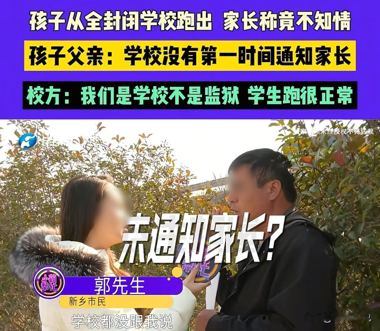 河南郑州,男子儿子18岁,很调皮,不服管,为了管好儿子,他把孩子送去了一家全封闭的教育基地,6个月学费39800元。学校承诺:孩子不会跑的,要是跑了他们还教啥。可3个月,男子家的孩子突然跑了,可工作人员却没有及时通知他,男子看到妻姐信息才知道,妻姐说孩子找她要路费。男子找了儿子一个多月,可儿子一直下落不明,他觉得学校也有责任,找到对方,没想到对方却说:我们是学校,又不是监狱,他跑这不很正常。 2025年12月,郭先生满脸愁容的找来记者,说他找孩子找了一个多月了,一直都找不到,他晚上失眠睡不着,成天找,心里很着急。 事情还得从前几个月说起,郭先生儿子18岁了,可在家有点调皮,很难管教,有亲戚说郑州有一所学校,专门管这种调皮捣蛋、不太好管的孩子,挺不错的。 郭先生觉得这也是一个好办法,要是能够把孩子管好,那也挺好的,他联系了这个教育基地。 2025年8月4日,教育基地派人来郭先生家接孩子,对方让郭先生尽管放心,他们那边是全封闭管理的,教官平时都是一对一管孩子的,孩子不可能跑出去。 郭先生满怀期待的把孩子送了过去,他痛痛快快交了钱,6个月的学费一共是39800元,交完钱后,郭先生就回了家。 前几个月还一切正常,可到了11月1日下午4、5点的时候,郭先生突然收到妻子姐姐发来的信息。 妻姐说孩子跑出去了,郭先生第一反应这不可能,因为学校保证过不让孩子跑出去的。 妻姐告诉他,孩子跑出去后,不知道用了谁的手机,给她发了信息,找她要路费呢。 郭先生这才意识到事情的严重性,急忙跟学校打了电话,孩子大中午跑出去的,可都过去几个小时了,学校硬是一声都没跟他说。 工作人员这才表示:他们当时让孩子出去干活,可能监管的时候大意了,孩子自己翻墙跑出去了。 郭先生又气又急,孩子跑出去这么大的事情,学校第一时间既没有通知他,也没有报警。 更让他气愤的是,之后的一个多月里,尽管他四处找孩子,可孩子还是下落不明,他觉得学校必须给他一个说法。 他找来记者,跟学校沟通。 可基地的工作人员却说:“我们是学校,又不是监狱,他跑这不很正常。” 这话把郭先生给气笑了,当初自己送孩子来之前,就跟学校领导说清楚了,自己家孩子调皮,要是不调皮也不可能送来这种学校,他还特意问了孩子会不会跑了。 对方信心满满的跟他保证过的:孩子不会跑的,要是孩子跑了,你们还教啥? 记者问工作人员孩子是什么时候从学校离开的,离开之后有没有马上跟家长说。 工作人员表示孩子是下午3点左右走的,他们在电话里通知了家长,一直都在积极沟通,半夜11点多都在跟家长联系,直到郭先生说暂时不要他们跟孩子沟通了,他们才停止的。 郭先生却说,自己是下午5点从妻姐那里知道孩子走了的,学校之前没给自己打电话。 记者问工作人员发现孩子走了后,什么时候给家长打的电话,有没有让家长赶紧去找。 工作人员却表示他们要去核实一下什么时候给家长打的电话,可40分钟过去,也没拿出记录,他还理直气壮的说:“我们在电话里说了,谁先打这个电话重要吗?就算没有及时,然后呢?” 当记者再次追问到底是学校先告诉郭先生的,还是郭先生告诉学校的,工作人员居然拒绝回答,还让郭先生和记者可以走了。 郭先生报警后,警方查到了郭先生儿子的下落,他在新乡,郭先生也算松了一口气。 从法律角度来说,该如何看待此事呢? 郭先生把孩子送到教育基地,是出于对学校的信任,希望学校能好好教育孩子,让孩子变好,学校收了钱,就应该尽到自己的责任,对孩子进行妥善的管理和照顾。 孩子在学校里,学校就是孩子的临时监护人,有义务保障孩子的安全,孩子跑出去这么大的事情,学校既不及时通知家长,也不报警,这明显是不负责任的表现。 虽然郭先生的儿子已经满了18岁,属于完全民事行为能力人,但这并不代表教育基地可以免除管理与告知义务。 《民法典》第1200条规定:限制民事行为能力人在学校或者其他教育机构学习、生活期间受到人身损害,学校或者其他教育机构未尽到教育、管理职责的,应当承担侵权责任。 虽然郭先生的儿子是完全民事行为能力人,但教育基地同样需要对学员在其场内的行为尽到合理管控和风险告知的责任,学校在发现孩子出去后,应该及时通知家长或报警。 如果未第一时间告知家长,这属于履职疏忽,学校应该承担相应的责任。 关注@律觀法说 ,从法律角度看世界,感受不一样的人情冷暖。