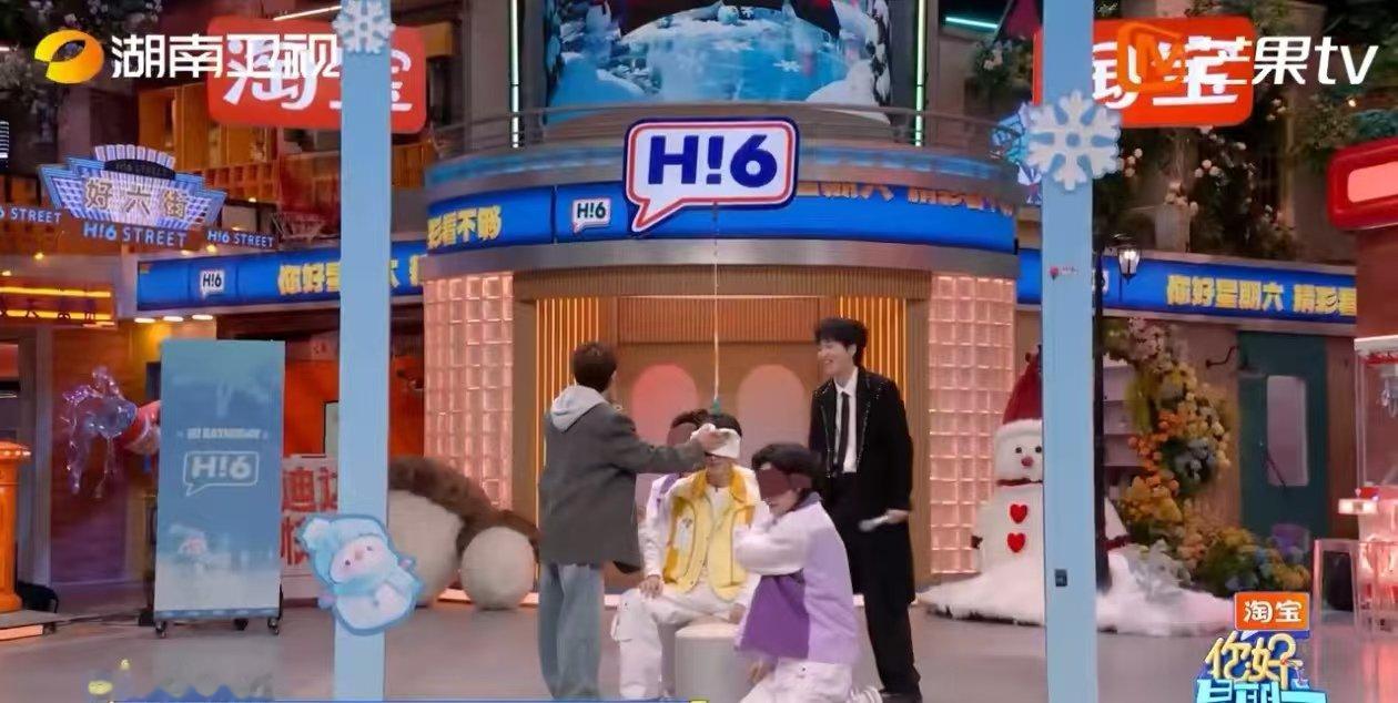 郭俊辰躲过第一次躲不过第二次你好星期六 “打雪仗”游戏现场,郭俊辰起身躲过第一次