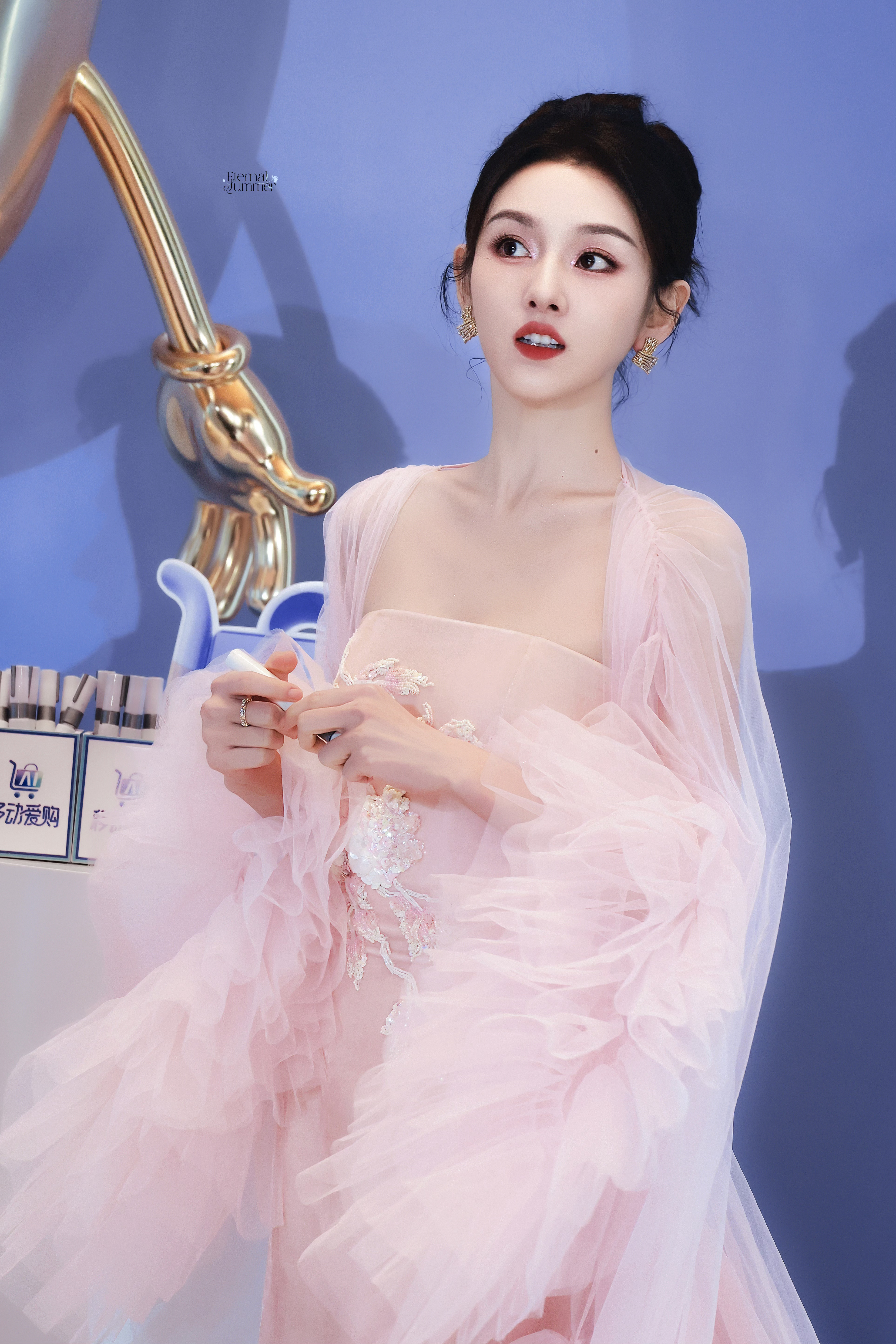 杨幂,魅力纱裙美腿妆造,这眼神太迷人了吧