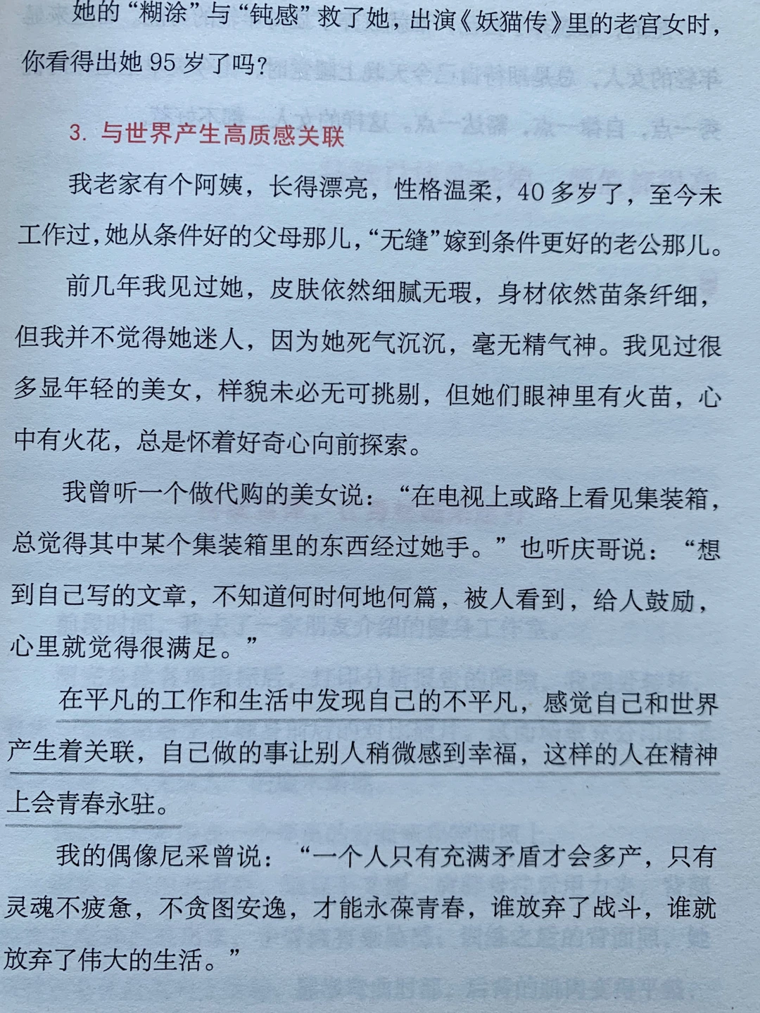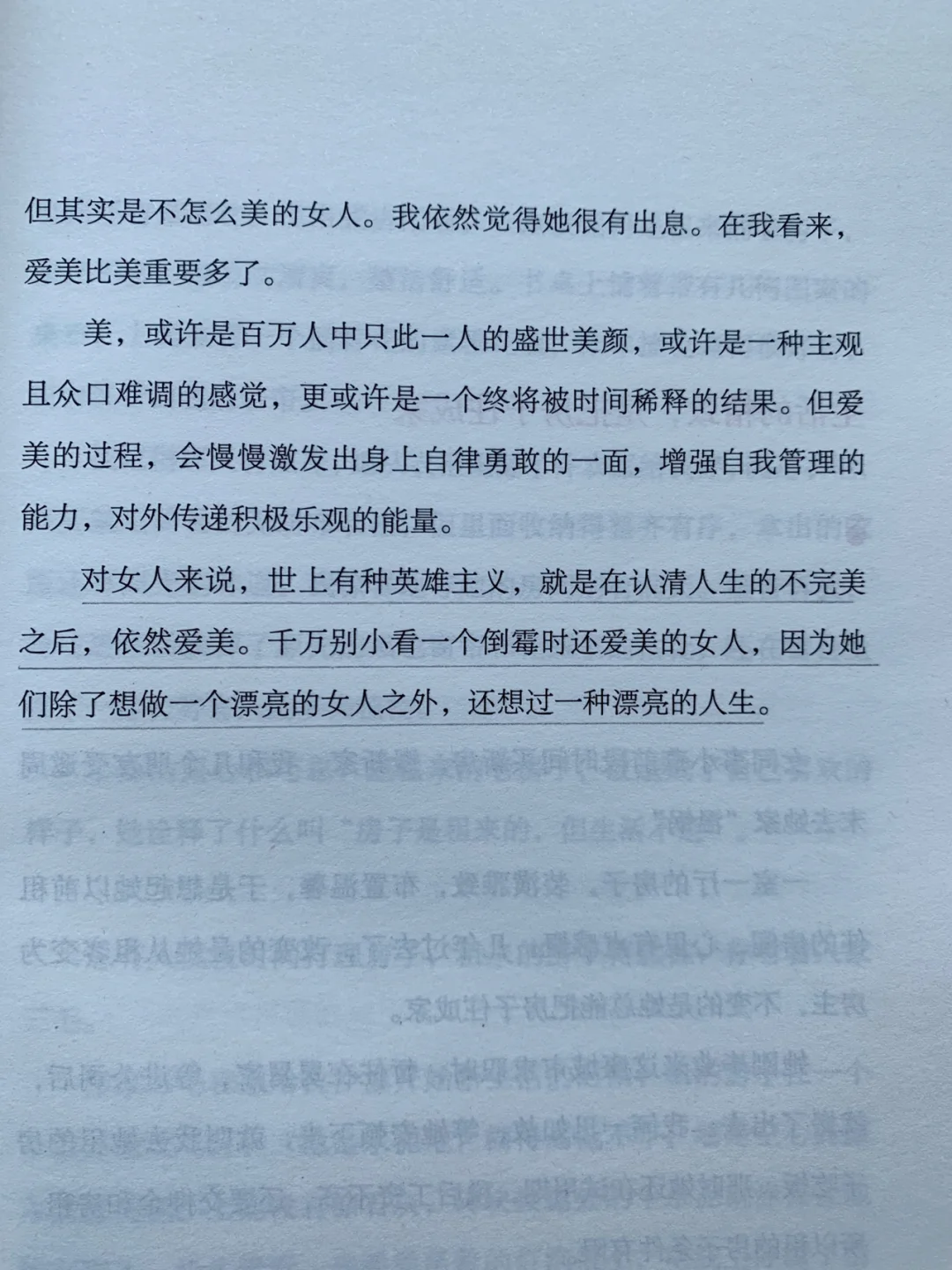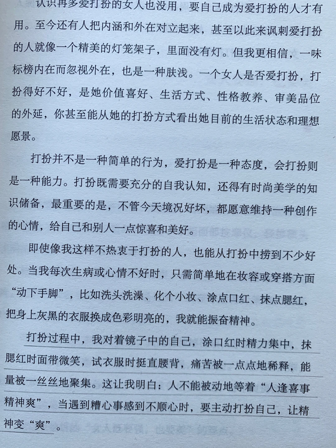 💡三.推荐语:看着书名,本以为又是一本陈词滥调的社会小作文,静下心来阅读,会发现大有不同的地方。作者以生活为主场,用丰富的见识、饱满的笔触为我们解读了女性在生活、人际、职场等遇到的各种问题,没有鸡汤和说教之嫌,只有妙语连珠的幽默和受用的经验。这是一本易读易懂正能量的书籍,打发业余时间之余,令人备受鼓舞。