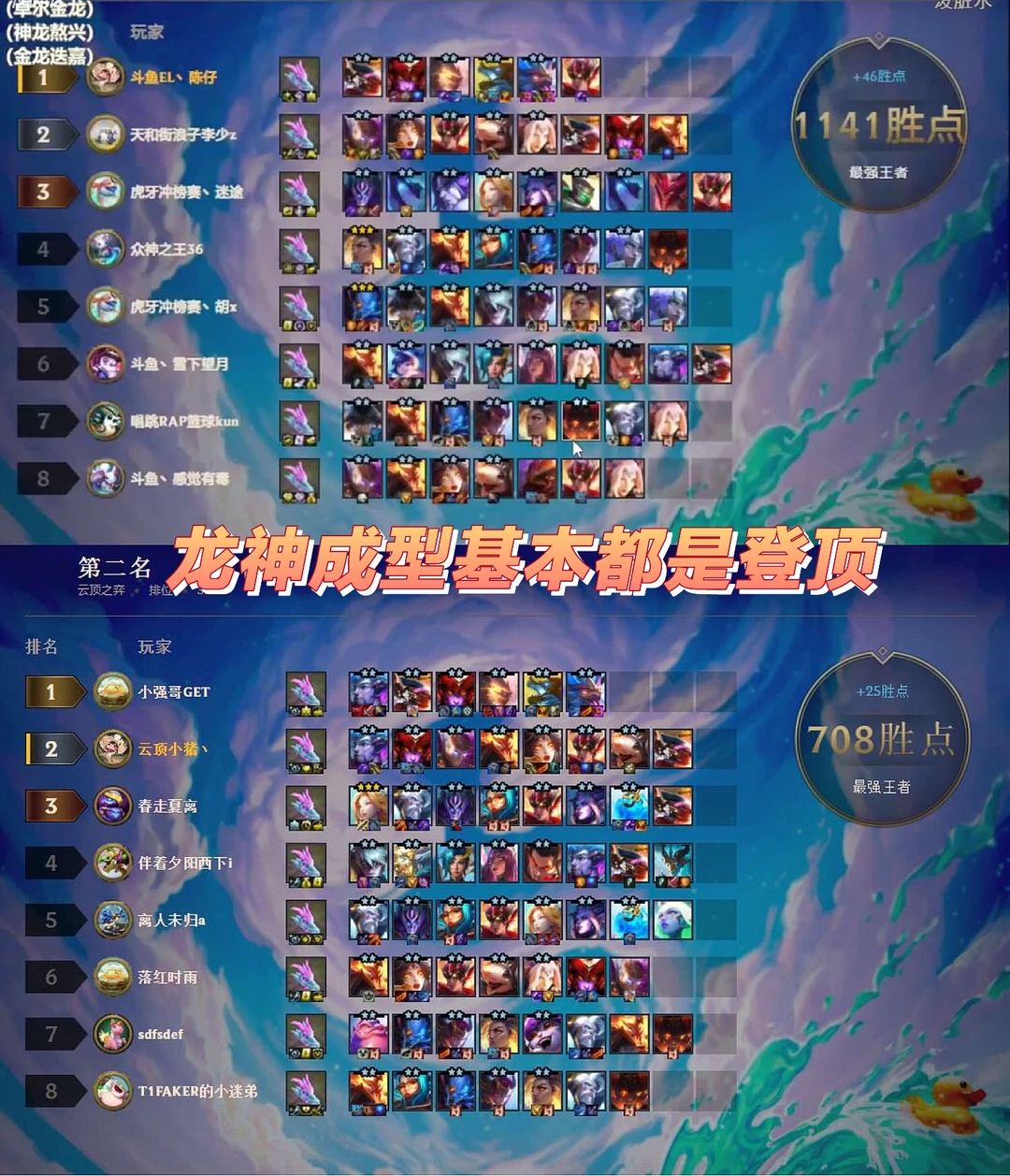 [哇R]之前也有小伙伴让做一期攻略,奈何版本的上分答案太多,龙神九五只能排到后面,因为这套阵容虽然强度很高,但过度和运营要求以及运气都有较高的要求。