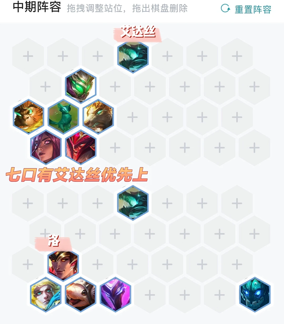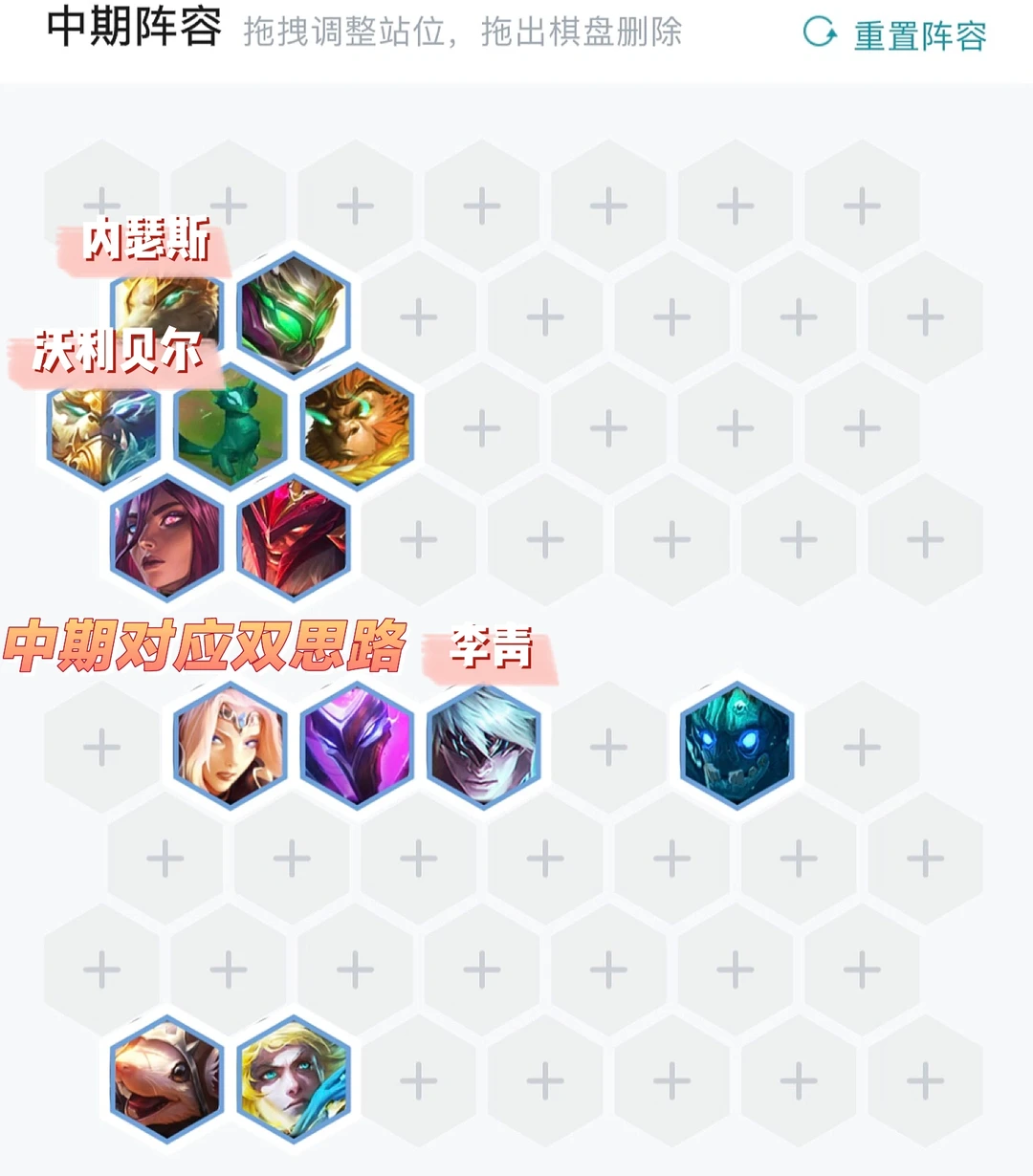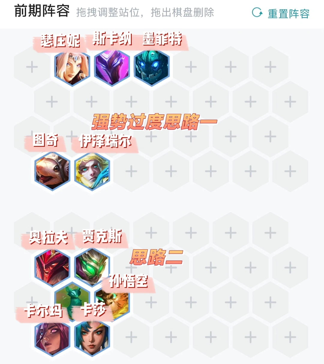 前期没有特别固定的思路。一切以连胜和保血量为主,上不了9这阵容就是空弹,8人口高费龙很难二星。