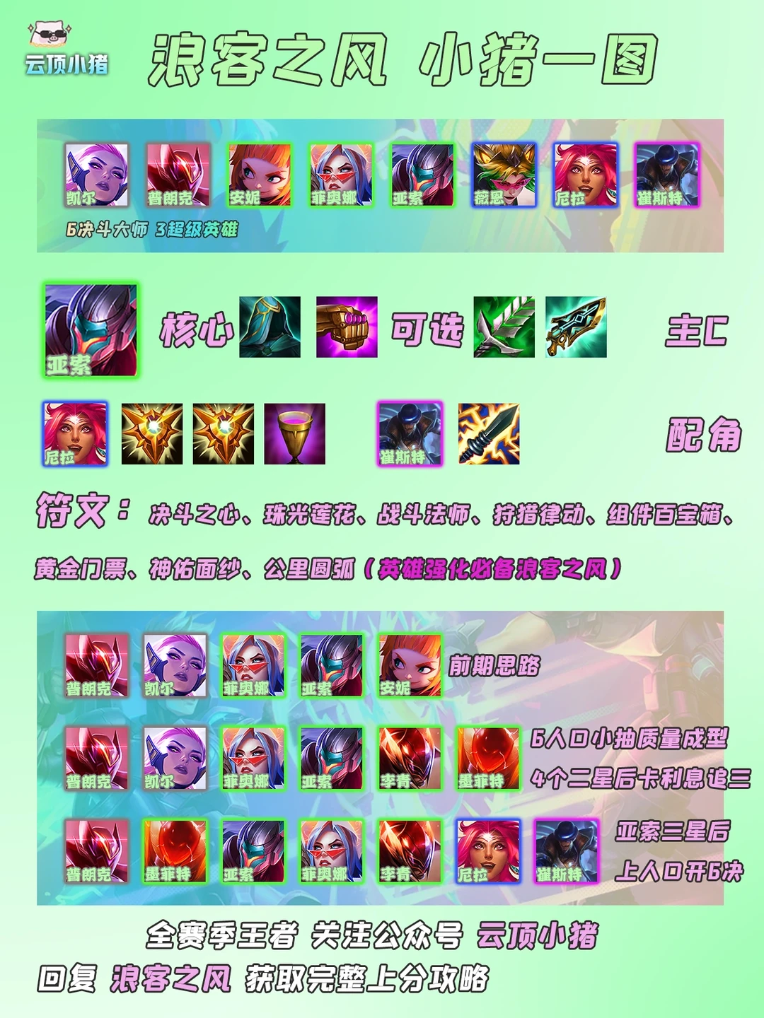 开局或者第二个海克斯来浪客之风,千万不要提前做好装备赌浪客之风,没有浪客三星亚索也是弟弟。