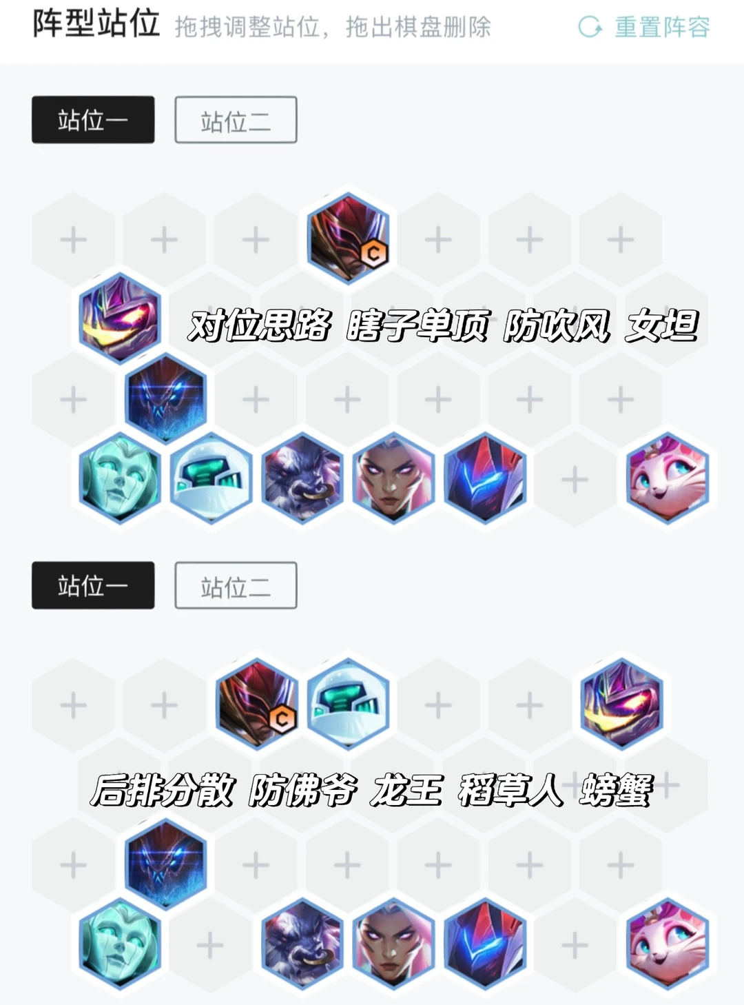 瞎子单独第一排,有吹风这种特殊情况可以防一手,后排输出尽量分散站位,这版本龙王、佛耶戈、螃蟹、稻草人这种克制的点太多了。