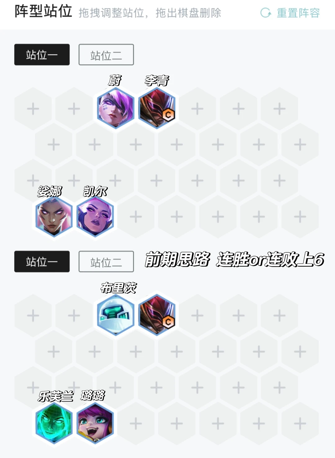 前期连胜或者连败都可,尽量别一胜一负,因为是6级抽牌阵容,不怕掉血的,特别顺的情况打连胜,否则有魔盗团必吃。