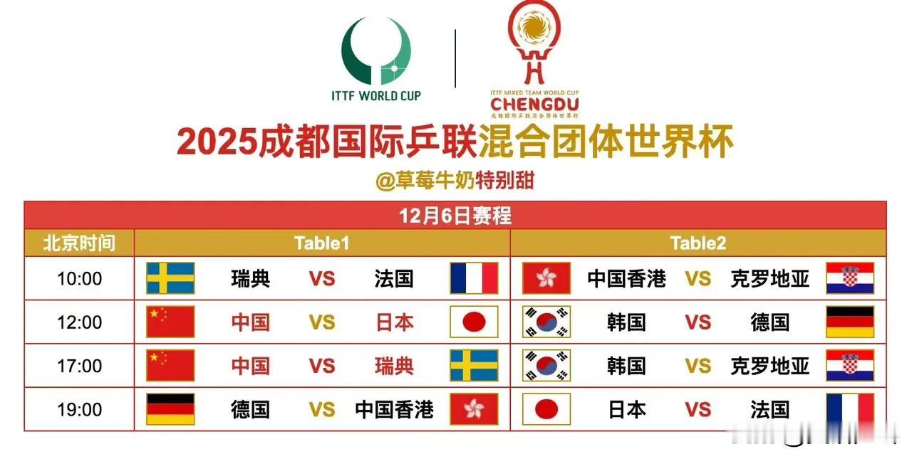 第二阶段循环赛:12.6 【🇯🇵日本7-8法国🇫🇷】19:00 T2 第一盘:篠塚大登/伊藤美诚3-0A·勒布伦/袁嘉楠 【13-11,11-4,11-0】 第二盘:大藤沙月2-1普莉蒂卡·帕瓦德 【10-12,11-6,11-3】 第三盘:张本智和0-3费利克斯·勒布伦 【5-11,6-11,2-11】 第四盘:篠塚大登/张本智和0-3F·勒布伦/A·勒布伦 【12-14,7-11,9-11】 第五盘:伊藤美诚/大藤沙月2-1袁嘉楠/帕瓦德 【11-4,11-4,8-11】