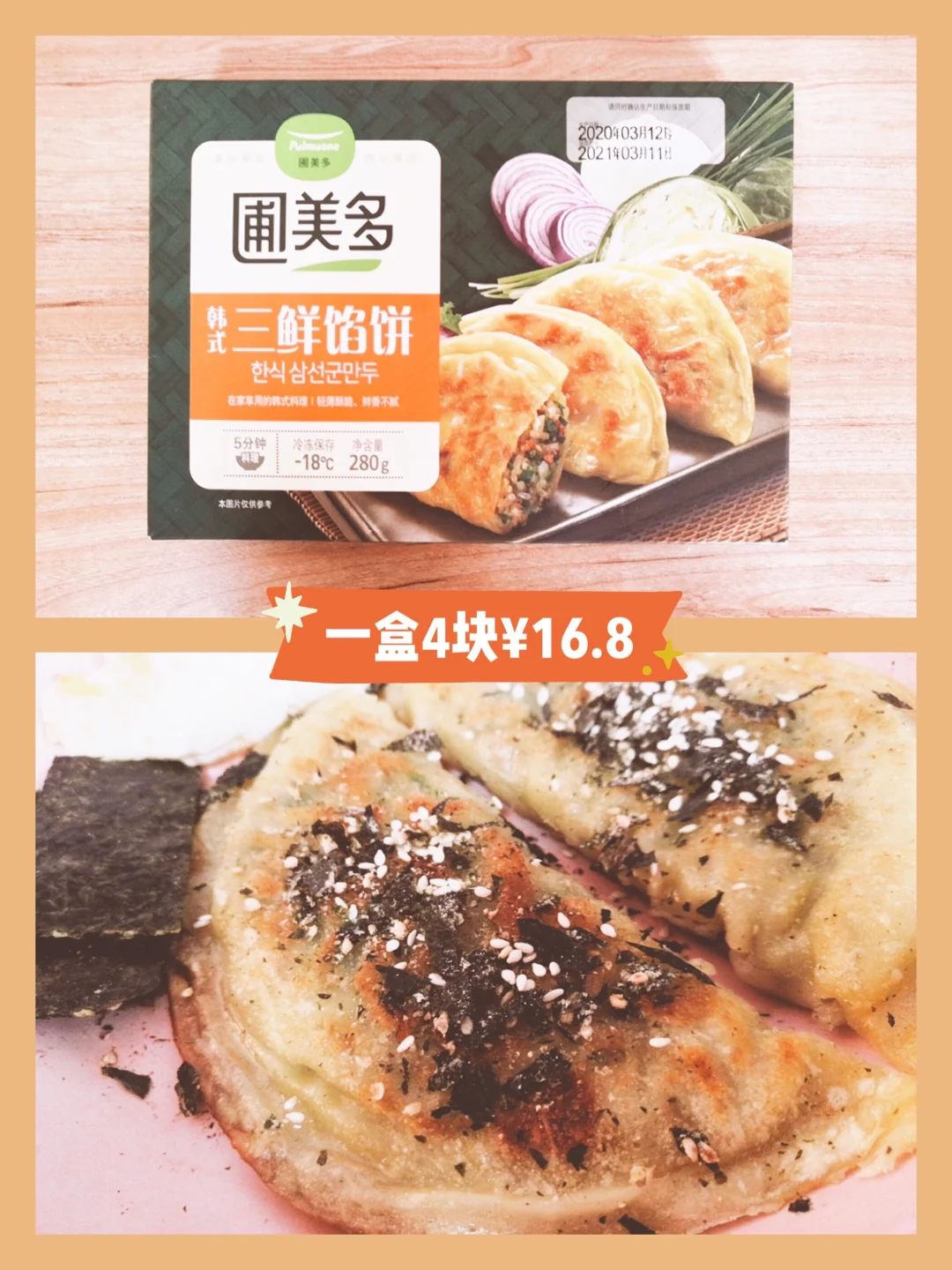 [飞吻R]圃多美韩式三鲜馅饼:韭菜粉条白菜馅儿的,鲜香酥脆,就是太像韭菜盒子了😳