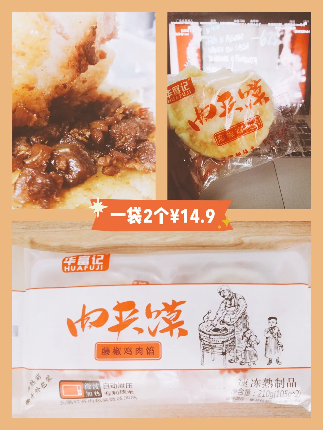 [飞吻R]华富记藤椒鸡肉夹馍:香菇鸡肉馅儿,藤椒味香浓,微波两分钟就能吃,方便又美味。