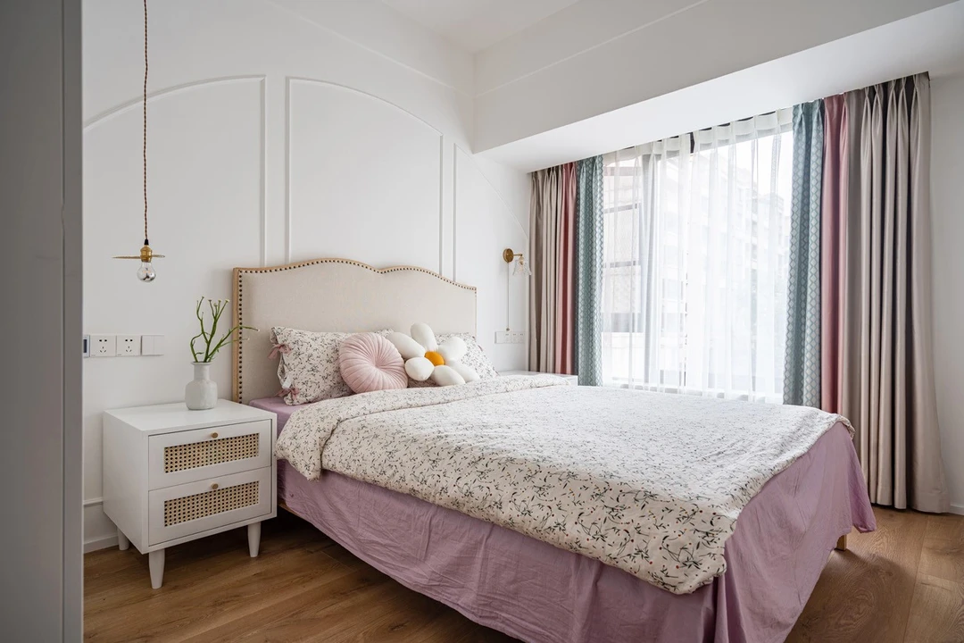 💎干净整洁的空间,墙面用石膏线做装饰,每一个细节都展现出法式风格的精致美。碎花床品点缀整个纯净的空间,带来一丝丝甜蜜自然的气息~
