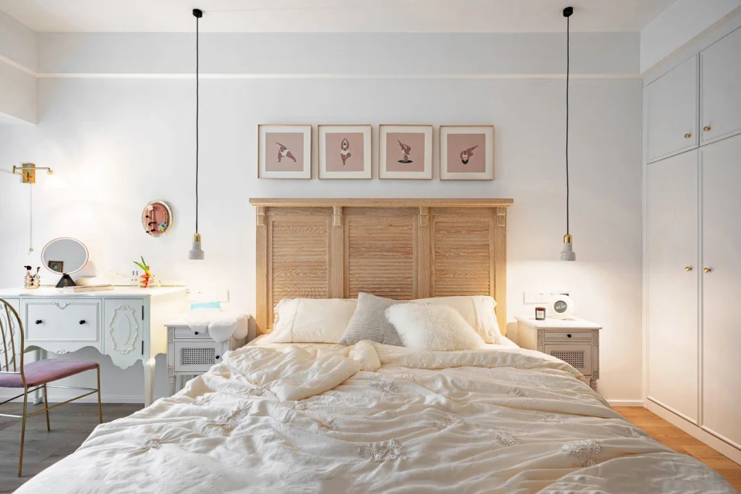 💎卧室简洁的装修方式让人感觉到轻松感,而且收纳的区域是做成定制通顶衣柜的设计,轻巧的空间也可以满足收纳的需求。实木靠背,特别又美观,可以让人把整个身心都放松下来。