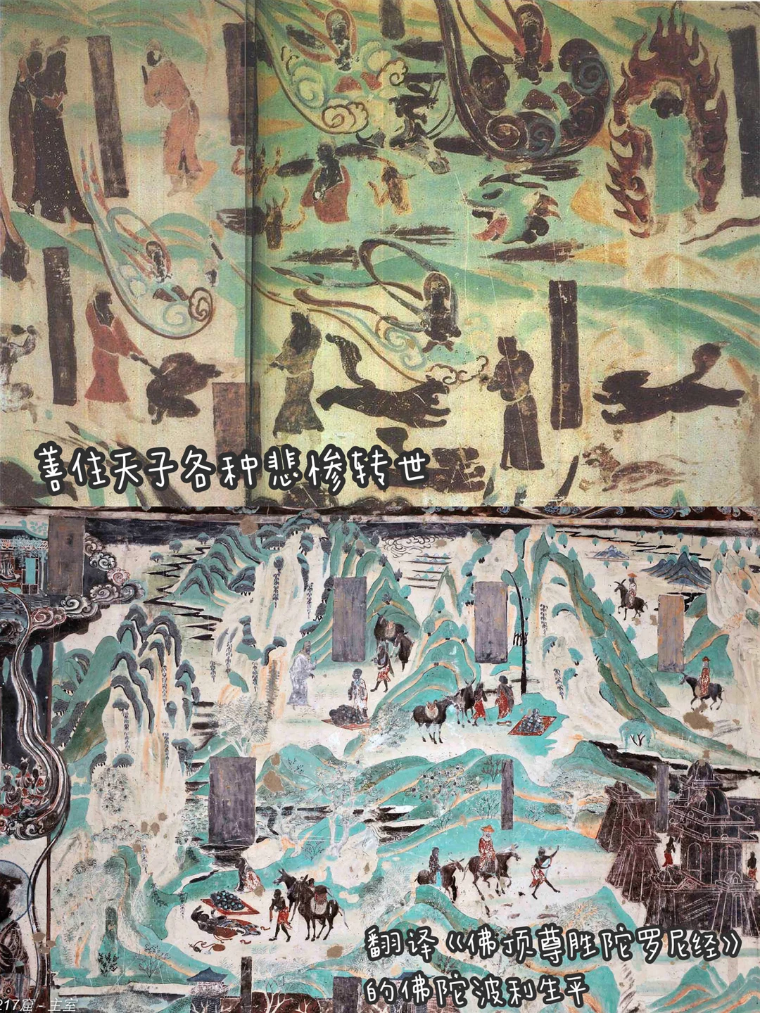 217窟是殷式家族家庙,主要看《佛顶尊胜陀罗尼经变说》,讲述了七日之后,寿命将尽的善住天子在天帝释帮助下,接受佛陀的陀罗尼咒,改变必死命运的故事。