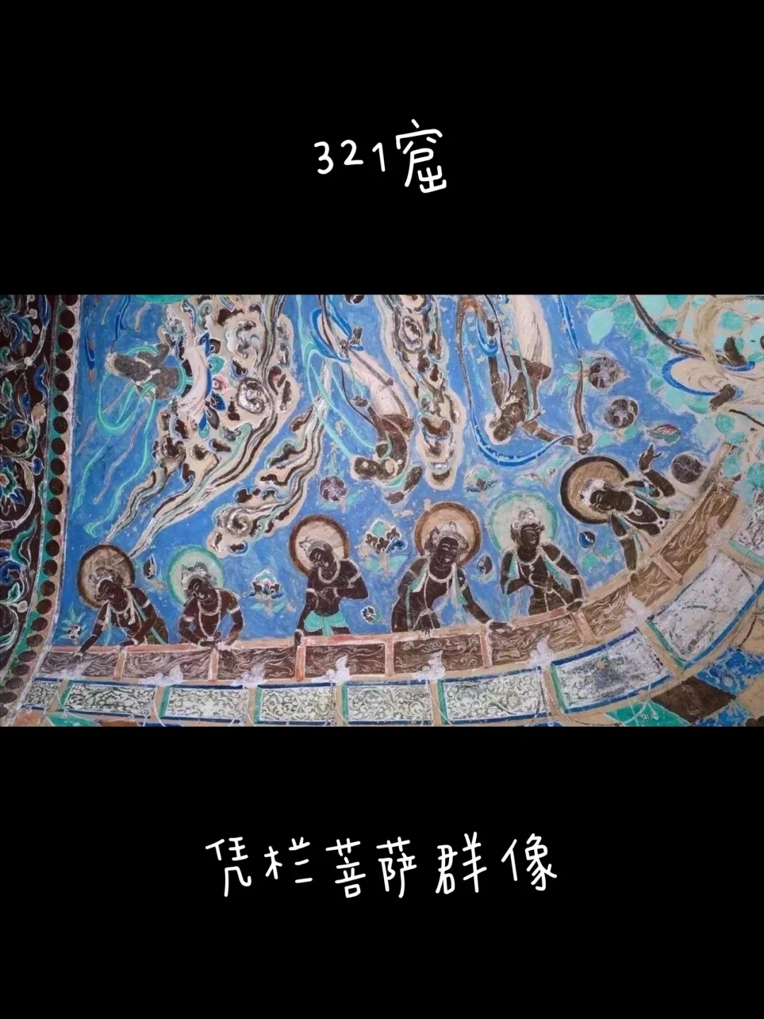 321窟主龛顶部有精致的凭栏菩萨群像。