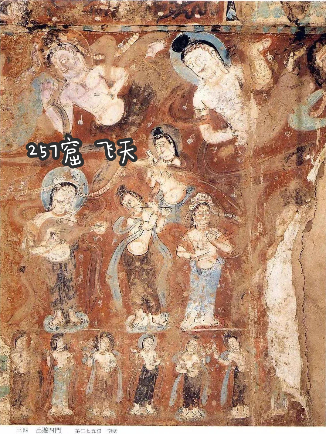 275窟风格接近新疆克孜尔石窟,入口有一未被氧化的飞天非常抢眼。