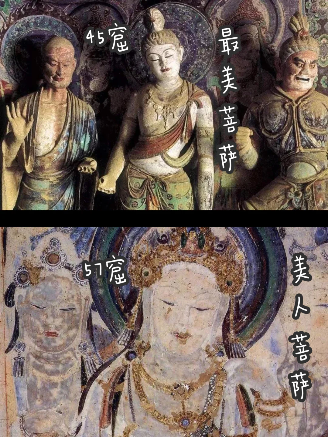 57窟南壁《弥勒说法图》的右胁侍菩萨被誉为“美人菩萨”,在数字敦煌可以观看。