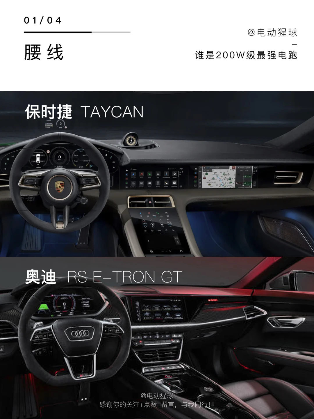 奥迪RS e-tron GT与保时捷Taycan采用同平台(J1)打造 新车将与奥迪R8在同一座工厂(Bollinger Hofe工厂)共线生产 车身尺寸为:4990*1960*1410mm,轴距为2900mm 搭载了三幅式平底RS运动方向盘、12.3英寸液晶仪表、10.1英寸内嵌式中控屏 零百加速3.3秒,最高车速控制在250km/h,CLTC工况续航里程为495公里
