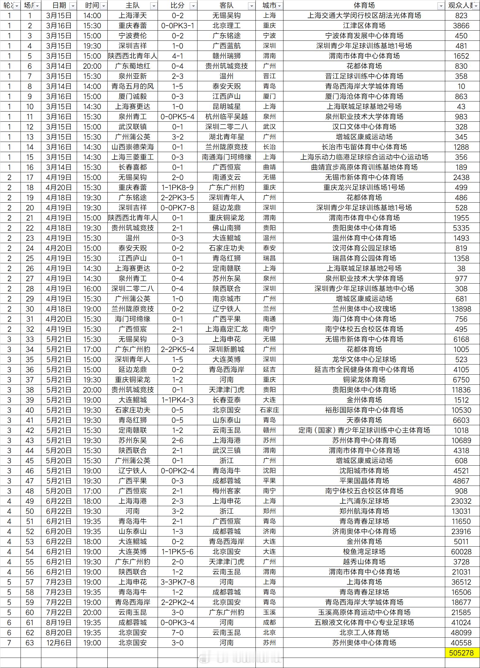 2025足协杯现场观众人数统计(决赛)赛季统计:2025赛季中国足协杯共计63场