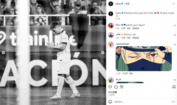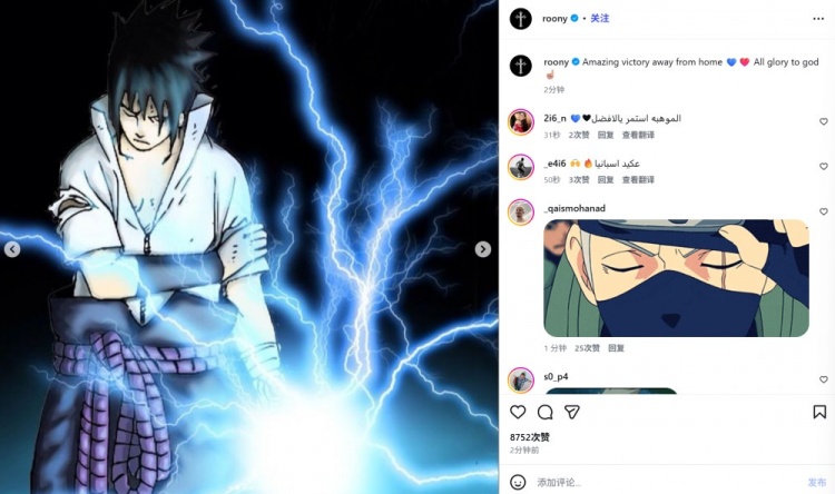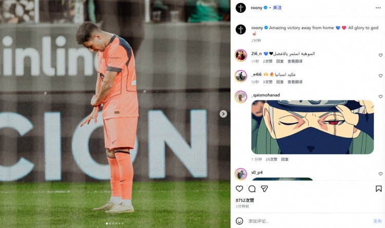 他也在赛后通过社媒晒出自己模仿《火影忍者》佐助的庆祝动作,并配文:“客场取得精彩胜利一切荣耀归于上帝。”