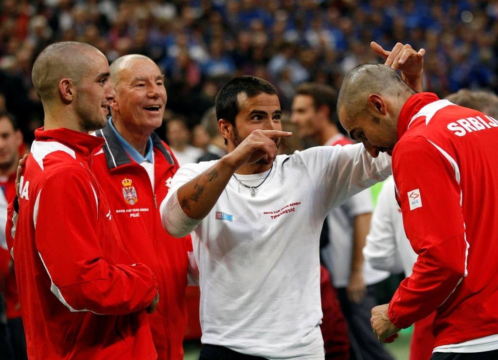 经典名画:2010年塞尔维亚队历史性地赢得戴维斯杯之后,德约科维奇和全队信守决赛