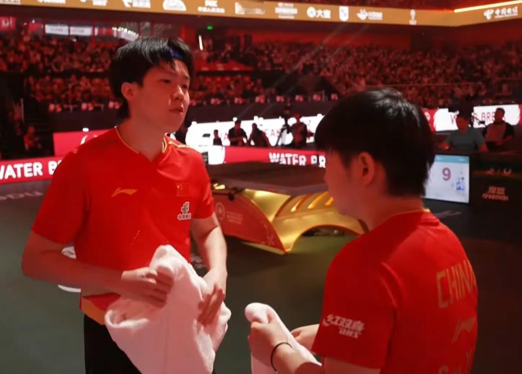 莎头一路落后,最后11:9逆转, 肖战非常生气, 局间说:你们一定不要错位, 你错位了, 他们搓那一下, 你们就非常难受. 只要把短球卡住, 你们就有绝对的优势。 还有一点是, 他如果再摆短, 你可以直接劈他死角。 肖战讲的很细, 却很有效果, 第二局 莎头8:4领先了。