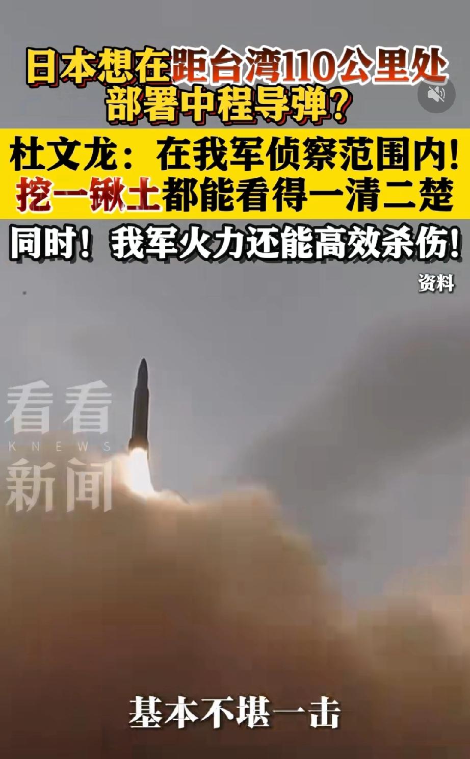 日本在距台湾110km处部署导弹。 军事专家杜文龙称:一切皆在我军侦察范围之内。网上提及的这些武器都能被轻易消除,在我方远程打击下根本不堪一击。