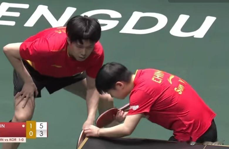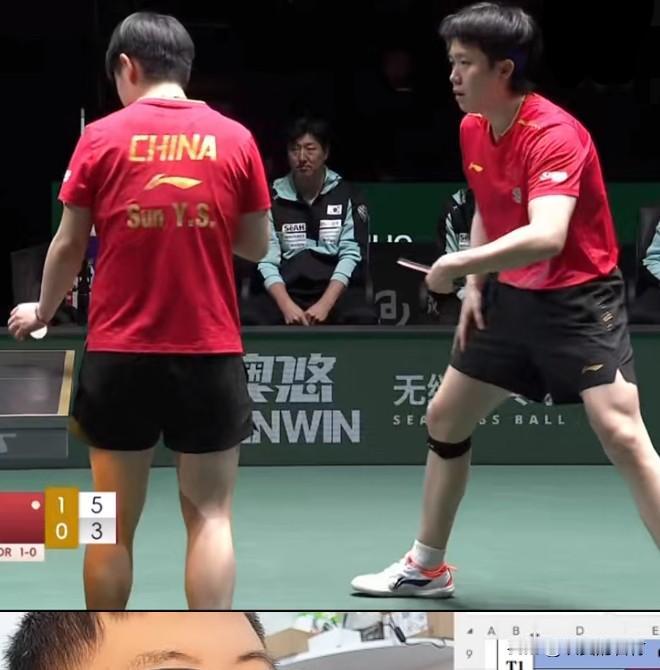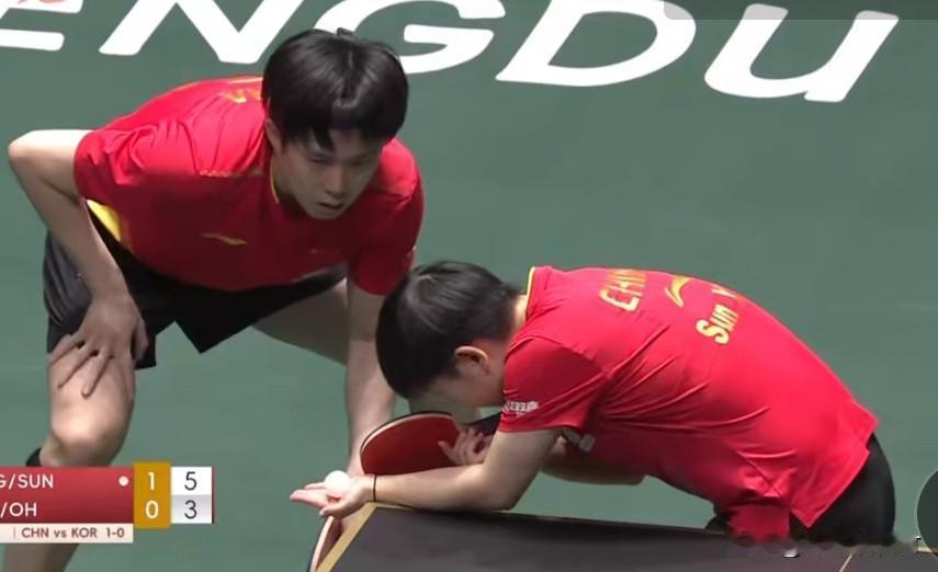 王楚钦孙颖莎3:0吴晙诚崔孝珠 第一局王楚钦孙颖莎11:9战胜吴晙诚崔孝珠 第二局5:3,双方得分8:4,吴晙诚得分8:5,莎莎正手进攻球出台8:6,双方得分9:7,韩国组合得分9:8,大头正手进攻直线得分10:8,王楚钦反手得分11:8。王楚钦孙颖莎赢下第二局。 第三局,开局0:3,吴晙诚正手进攻斜线得分0:4,大头得分1:4,吴晙诚球出台2:4,双方得分3:5,换边。大头莎莎连续得分6:5,大头发球直接得分7:5,莎莎得分8:5,莎莎得分9:5,大头反手球出台9:6,崔孝珠反手直线得分9:7,吴晙诚正手进攻得分9:8,韩国组合得分9:9,大头正手进攻得分10:9,吴晙诚反手直线得分10:10,莎莎正手进攻直线得分11:10,莎莎大头得分13:11。王楚钦孙颖莎赢下第三局。 王楚钦孙颖莎3:0吴晙诚崔孝珠