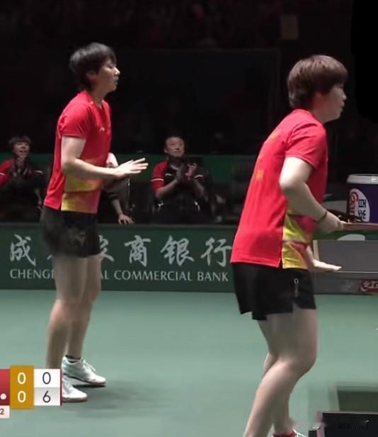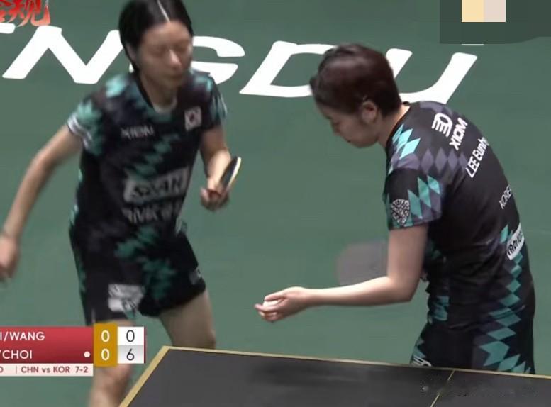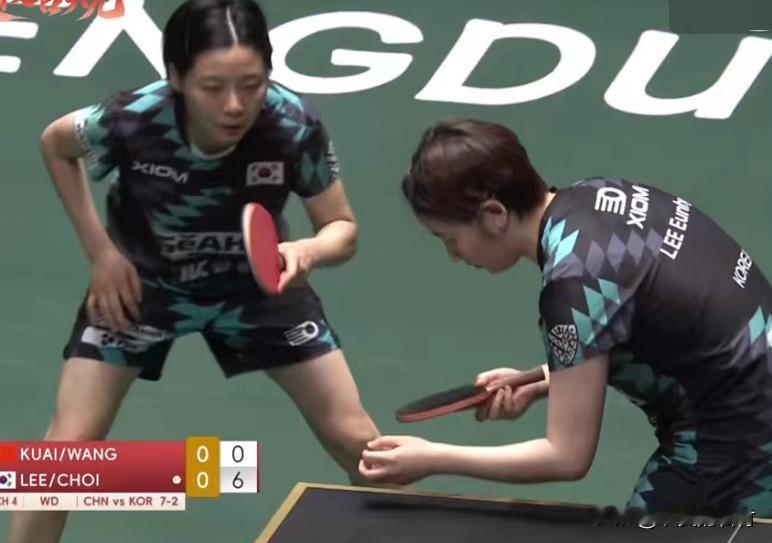 中国队8:3韩国队,晋级决赛 第四场女双 王曼昱蒯曼1:1李恩惠崔孝珠 第一局开局0:6,双方得分2:8,韩国组合得分2:9,韩国队得分10:2,曼昱蒯曼连续得分4:10,曼昱摆短得分5:10,韩国队得分11:5韩国队赢下第一局。 第二局,开局3:3,双方得分4:4,韩国队正手进攻连续得分4:6,曼昱得分5:6,韩国队李恩惠正手进攻得分5:7,韩国队摆短出台6:7,蒯曼球出台6:8,双方得分7:9,曼昱蒯曼得分8:9,韩国队摆短球下网9:9,曼昱正手进攻得分10:9,中国队赛点。韩国队擦边球得分10:10,蒯曼接发球得分11:10,中国队再次拿到赛点。蒯曼反手球出台11:11。曼昱正手进攻得分12:11,中国队赛点。中国队叫暂停。暂停回来,蒯曼又失误12:12。蒯曼摆短得分13:12,曼昱正手进攻得分14:12。王曼昱蒯曼赢下第二局。 王曼昱蒯曼1:1李恩惠崔孝珠 中国队8:3战胜韩国队晋级决赛