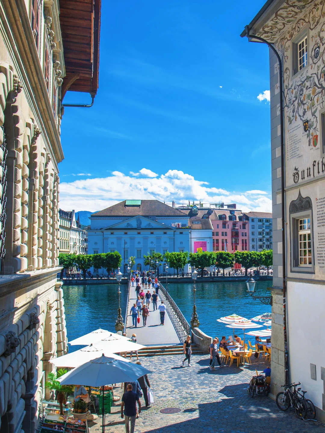 这是欧洲现存最古老木制廊桥(1333年建),桥顶彩绘记录黑死病历史,八角水塔曾兼具防御与金库功能。