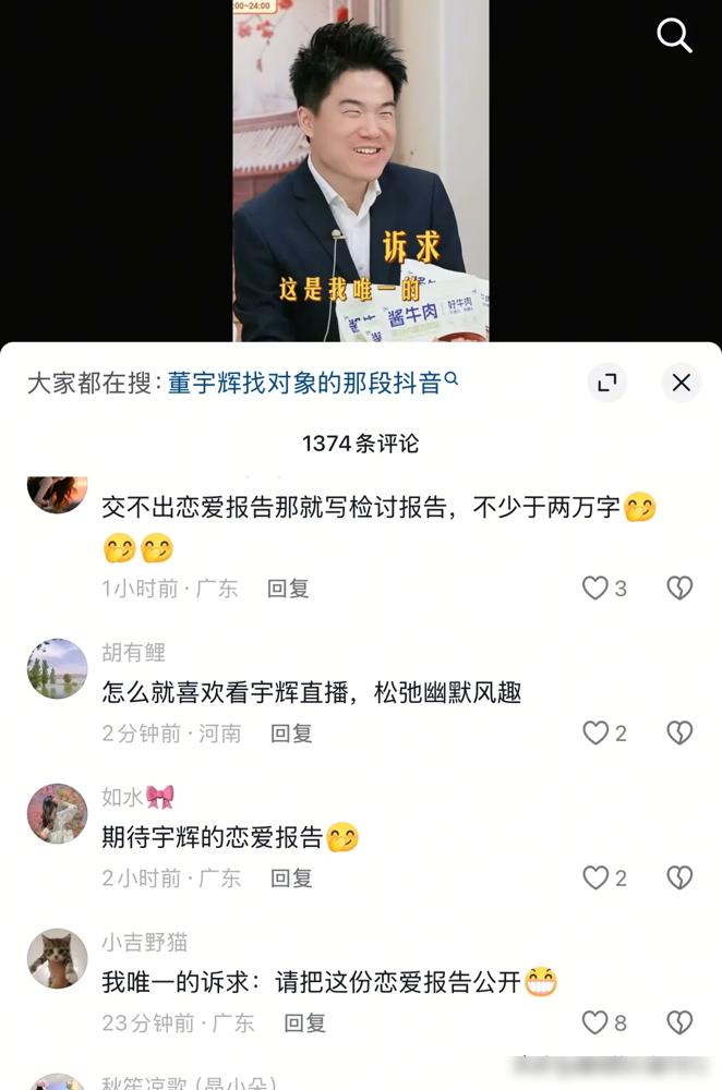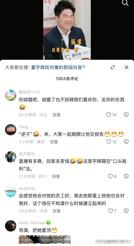 与辉同行的这帮小编,我看是彻底皮痒了。 趁着董宇辉还在睡觉,居然敢偷偷剪视频蛐蛐老板? 这胆量,简直是耗子给猫当伴娘,不想活了。 视频一出,大家直接笑疯了,但这笑声里全是替小编捏把汗的。 大家这警告也是绝了:“你要不要查查宁古塔现在的气温?” 这哪是剪视频啊,这是在给自己预定流放边疆的单程票。 等宇辉醒过来,看见这杰作,估计都不是让你交报告那么简单了。 起码得来个万字检讨,外加年度工作总结,手写的那种! 不过话说回来,这恰恰暴露了与辉同行最让人眼红的地方。 这种没大没小的职场氛围,装是装不出来的。 只有老板真把员工当自家弟弟妹妹,底下人才敢这么肆无忌惮地作死。 换个整天板着脸的资本家试试?借小编俩胆儿也不敢。 但也别光顾着乐,有个大家那是真图穷匕见。 既然都提到交报告了,宇辉你也别在那装傻。 陪了你三年多的丈母娘们,唯一的诉求就是你的恋爱报告。 工作报告就算了,把女朋友这事儿交代清楚, 那才是正经事!