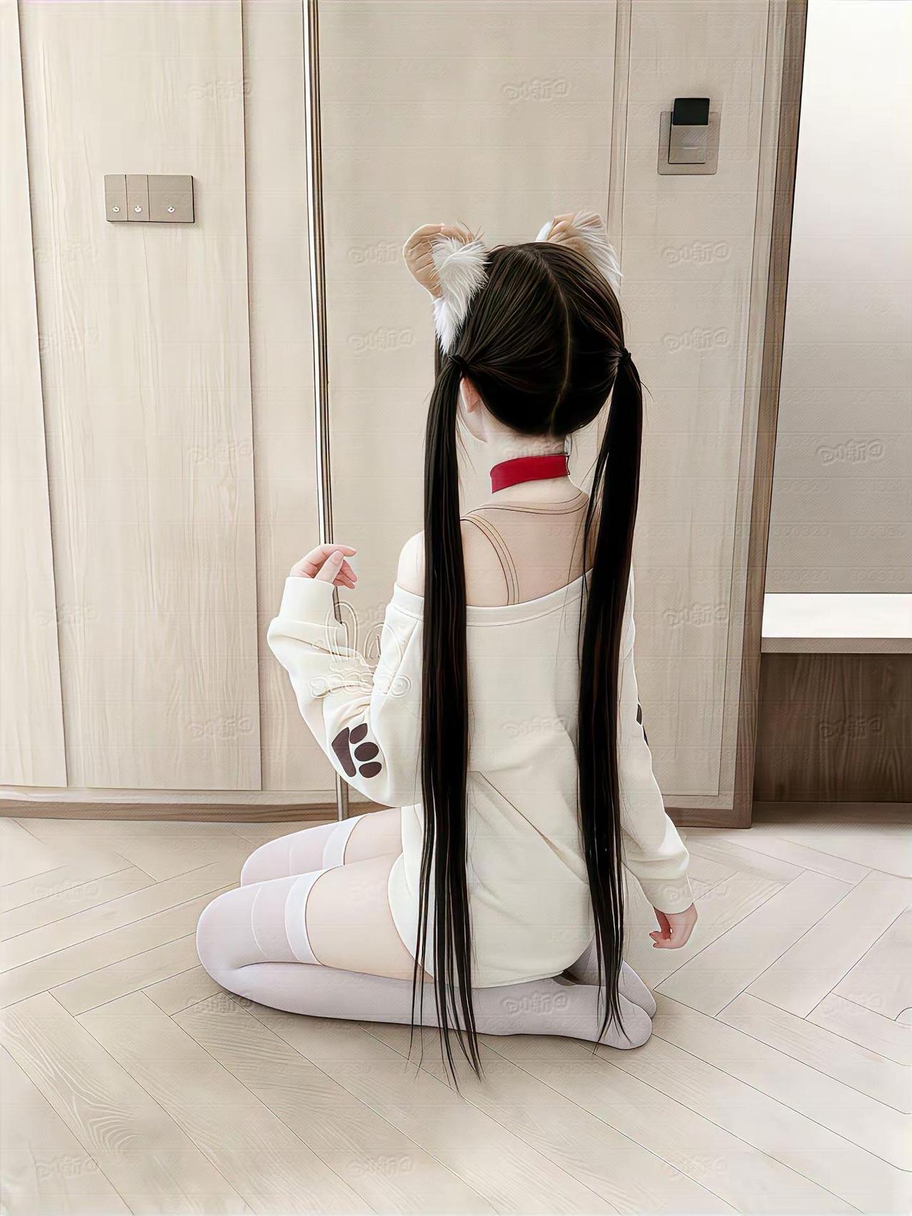 温柔少女,黑发蝴蝶结,白色蕾丝裙,清新自然。
