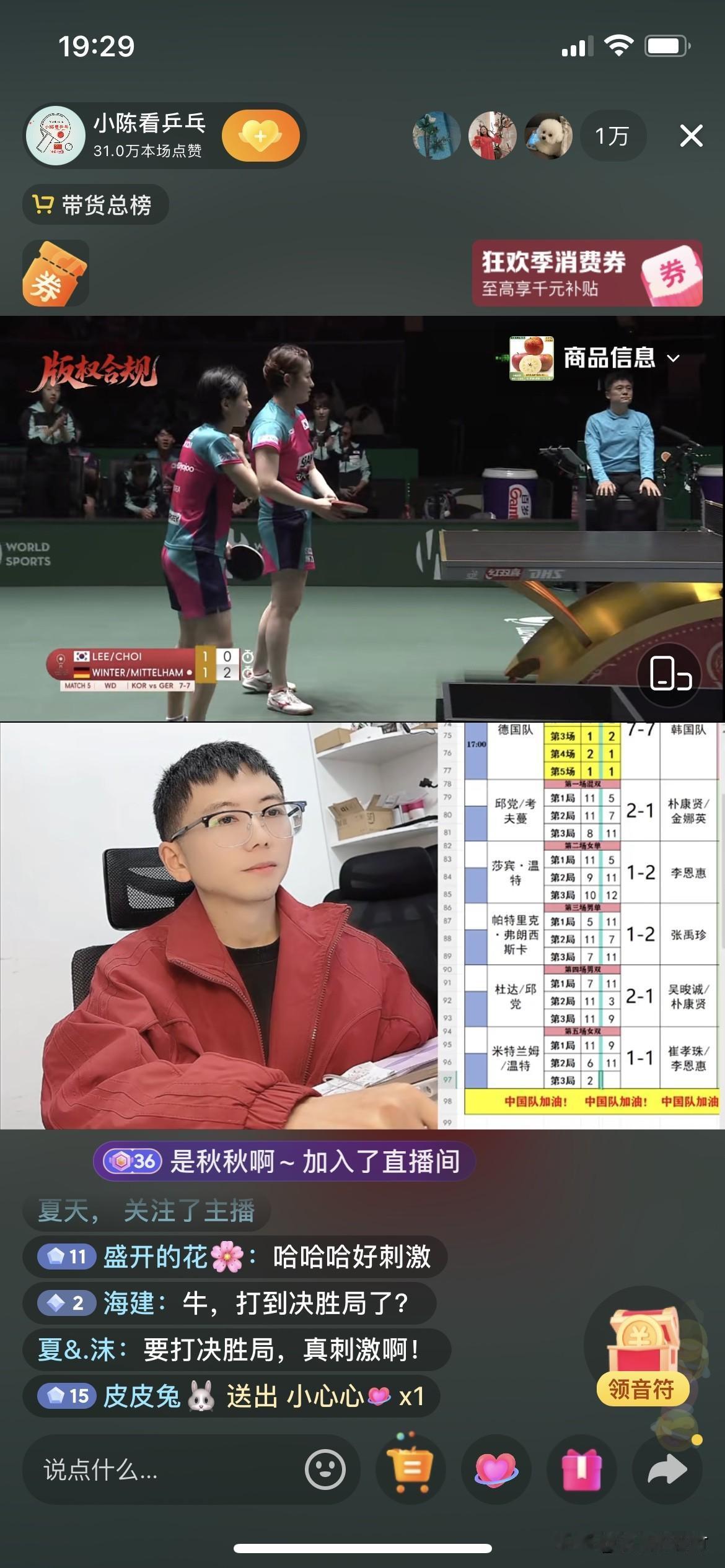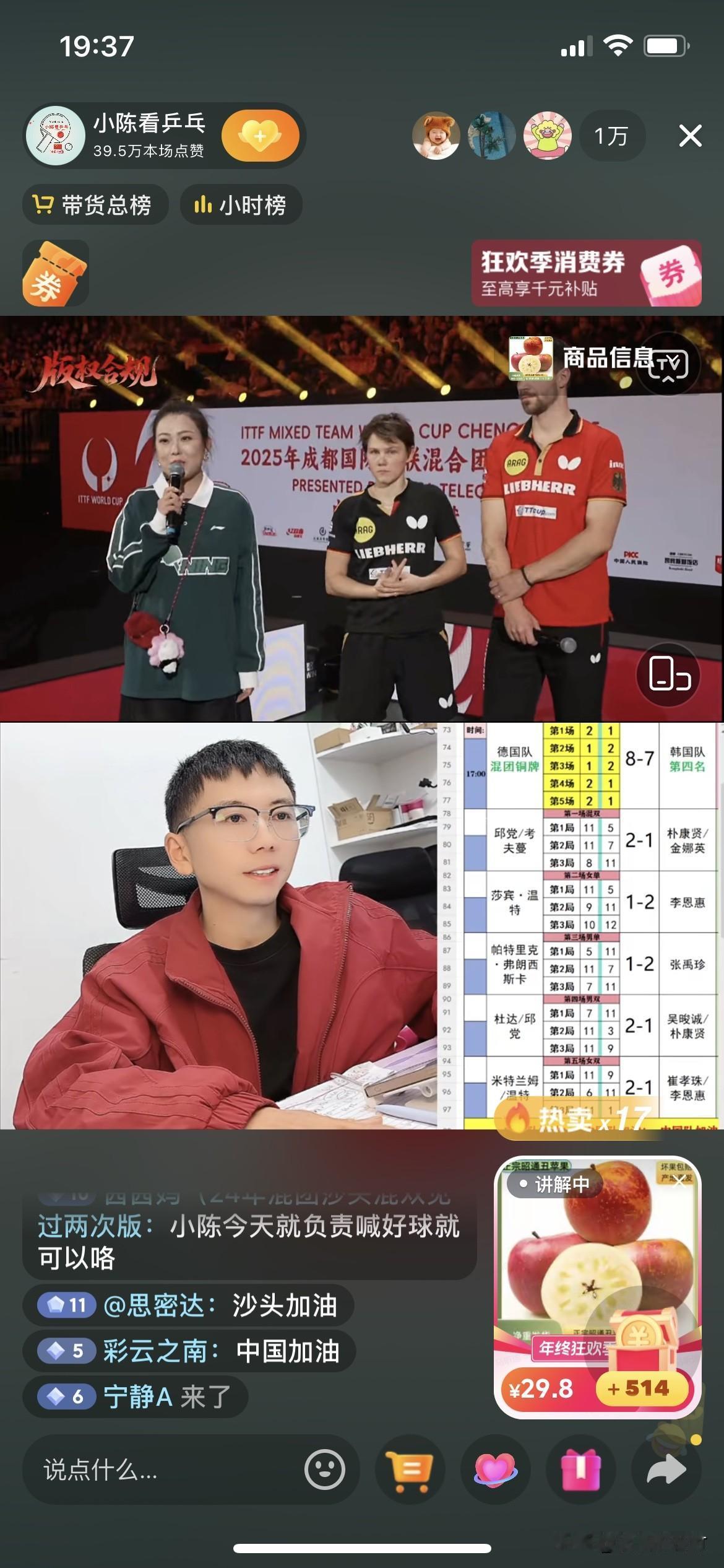 德国队8:7战胜韩国队获得铜牌 双方打到第五场第三局才分出胜负。 第一场混双 邱党考夫蔓2:1朴康贤金娜英 第二场女单 莎宾·温特1:2李恩惠 第三场男单 弗朗西斯卡1:2张禹珍 第四场男双 邱党杜达2:1吴晙诚朴康贤 第五场女双 米特兰姆/温特2:1战胜崔孝珠李恩惠 韩国队我觉得女双打的不好。韩国队女队主力申裕斌受伤了。影响了女队实力。 德国队的失败·温特立功了。 德国队男单弗朗西斯卡前两天赢了王楚钦但是今天弗朗西斯卡1:2输给了张禹珍。 恭喜德国队获得铜牌!