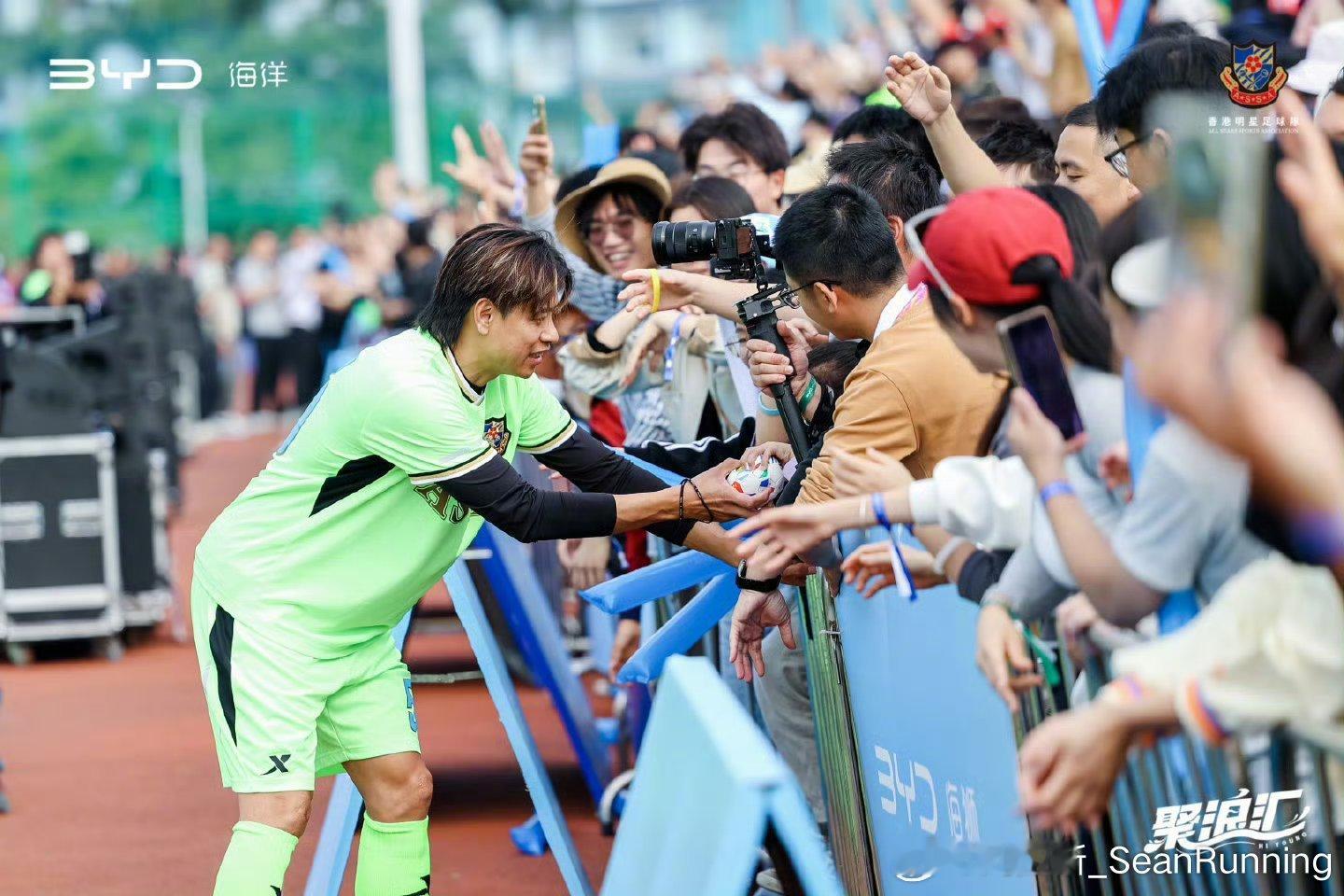 当比亚迪海洋车主踢馆香港明星足球队 海洋绿茵场上的巅峰对决简直燃炸啦!媒体、海洋高管、车主球员齐上阵,和香港明星队接连酣战,从下午两点起就高潮迭起,精彩进球与精彩扑救不断,让人看得热血上涌!赛场边助威声震耳欲聋,车友们“面基”氛围超棒。更重要的还有海洋新车的硬核应援,它加速迅猛,好似前锋突破防线;云辇C底盘过弯流畅,如同内切过人般丝滑。海洋新车以自身实力,为这场赛事增添别样魅力,这体验太难忘!