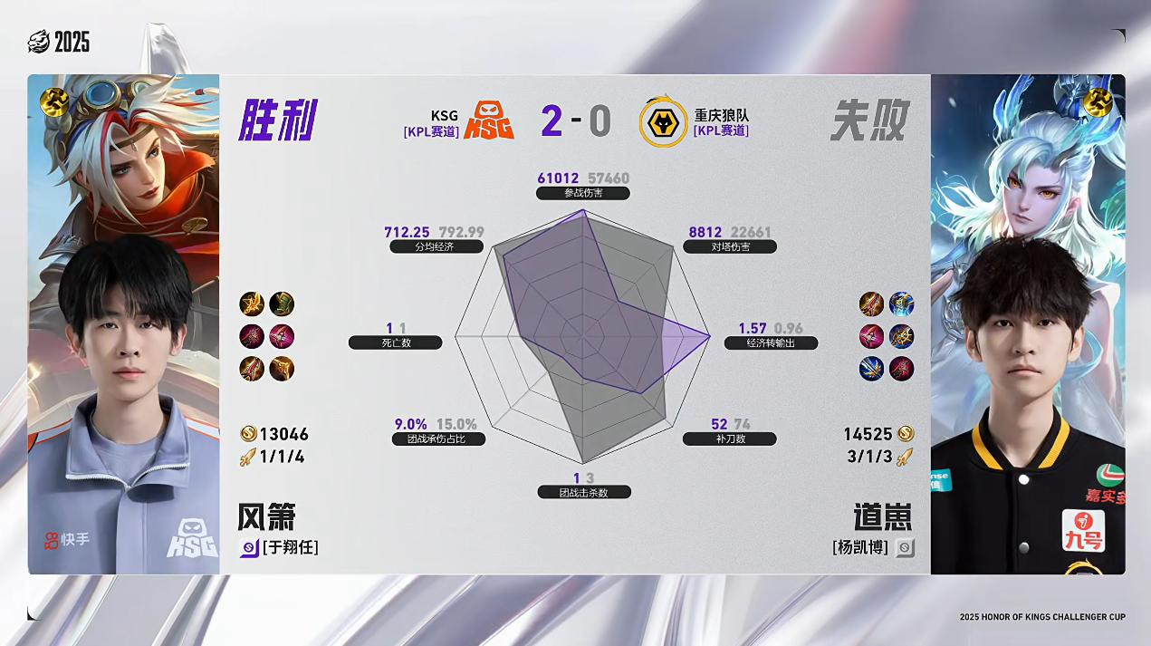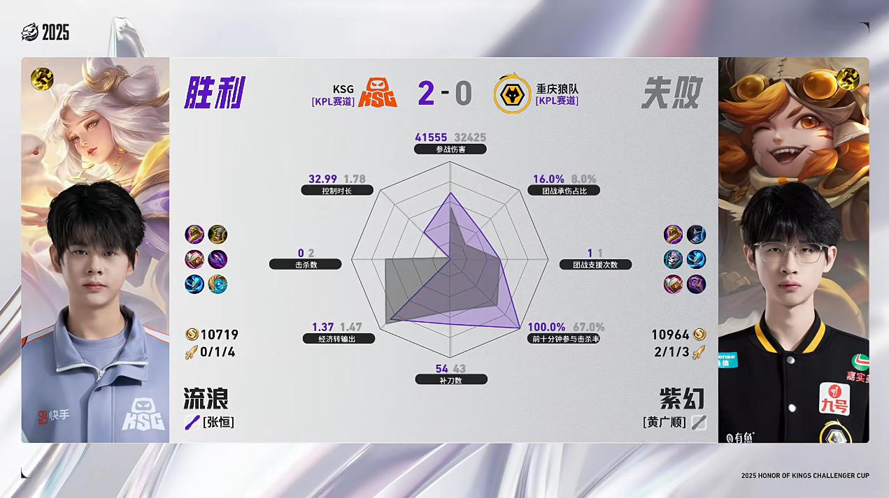恭喜KSG晋级2025王者荣耀挑战者杯单败淘汰赛16-8阶段