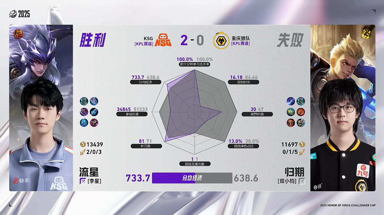 KSG/狼队第2局数据对比:归期狂铁几乎包围流星马超