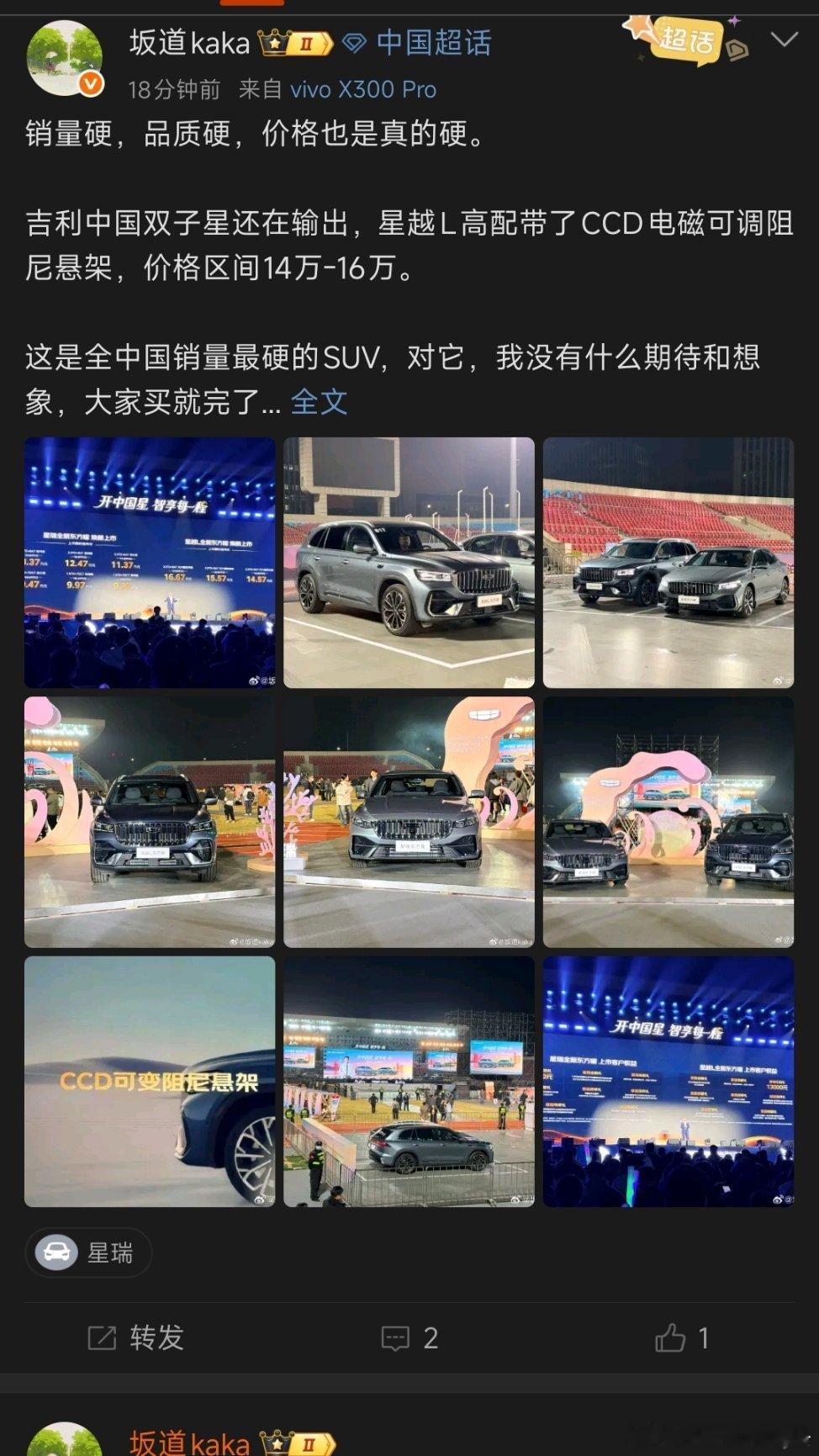 借一下好朋友 同学的图来一用星越L这车的CDC如果我没猜错是出自L946同一个工程团队是一家基本等同于zgh子公司的公司做的产品。带队大佬是一位业内的顶级专家。如果我都猜对了——这车的行驶品质应该是有些惊喜的。我说的这些内容只针对底盘不针对其他任何方面所以。我之前说的那些没有变