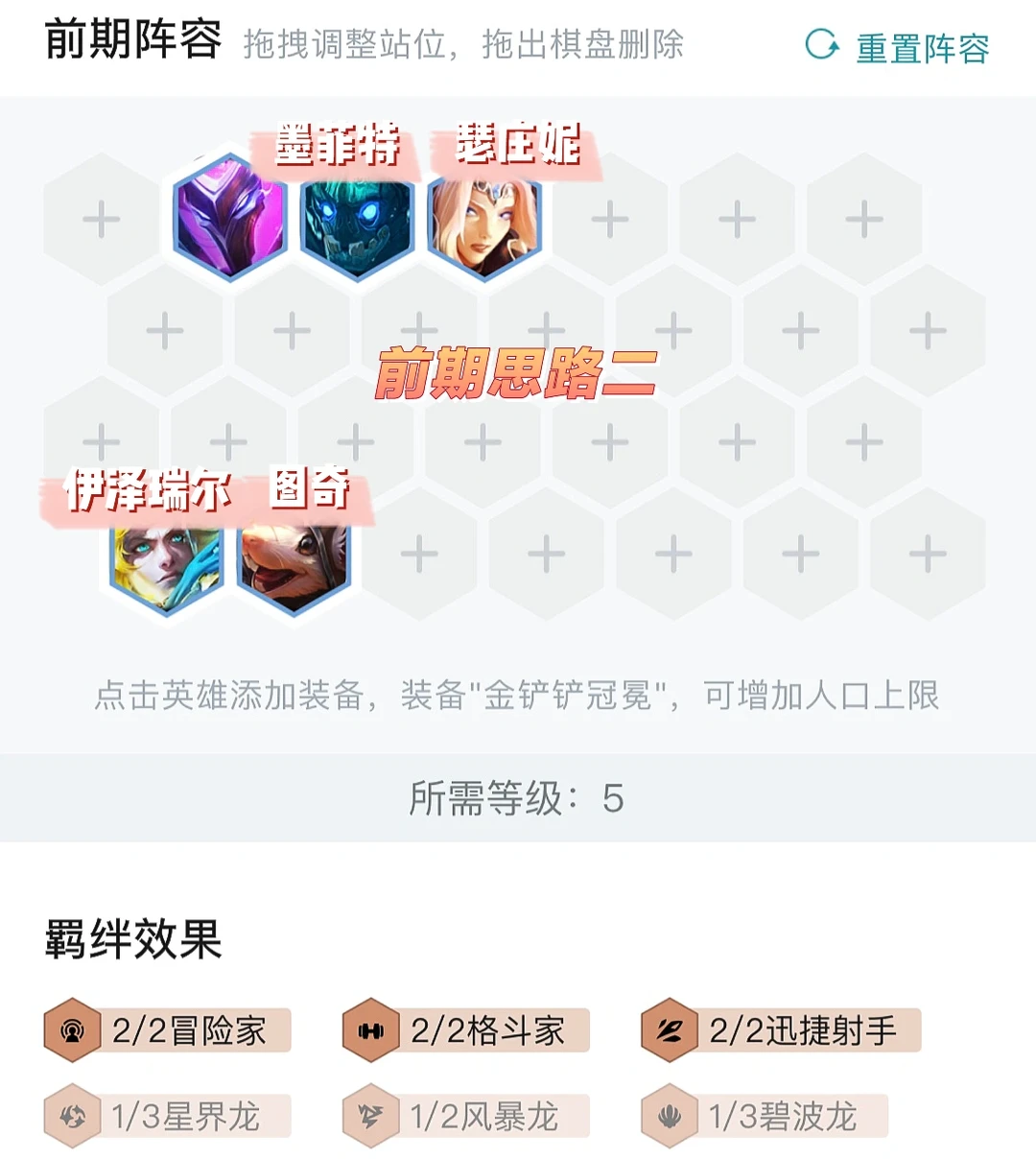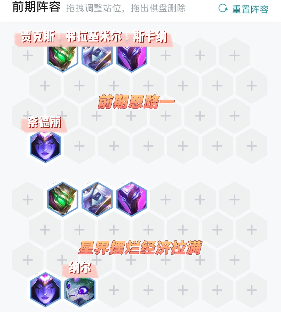 前期有连败和连胜思路。胡星界牌可以直接上星界打连败,经济拉满速7,也可以用冒险斗士射手体系打出连胜。