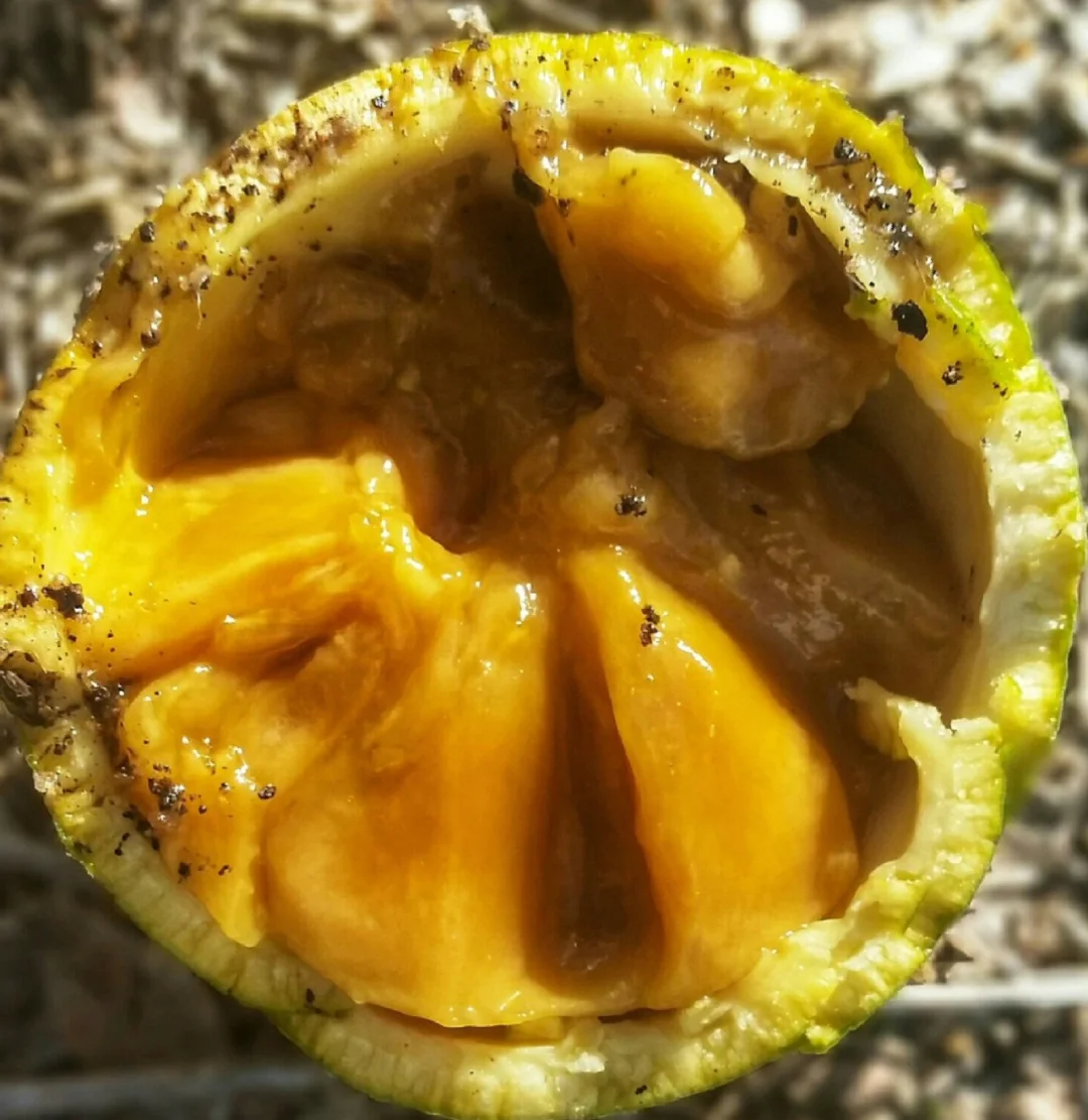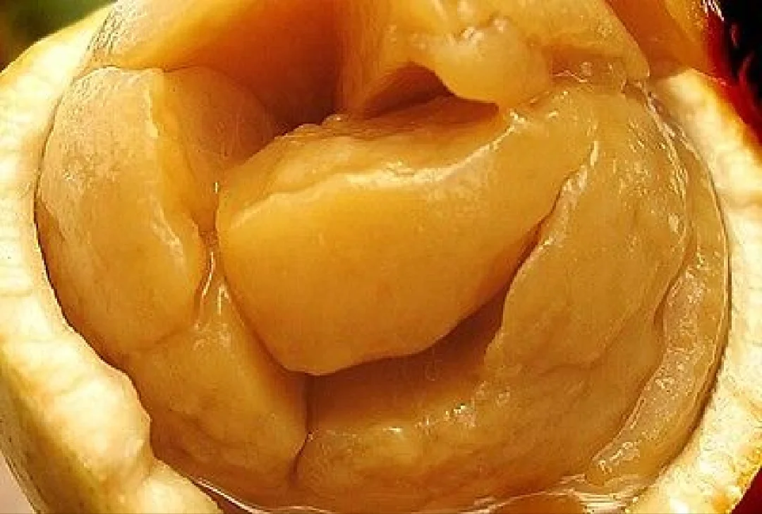 橘子般的绿色水果成熟后呈黄褐色。当果实成熟时,成熟的猴橘果肉柔软,并且含有大量硬棕色种子。周围有肉质、棕色、可食用的覆盖,果肉香甜,吃起来有一种苹果的味道,很美味。