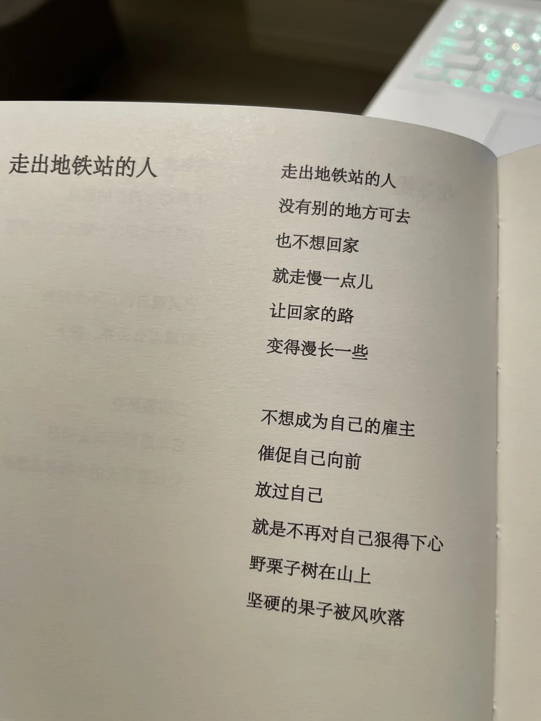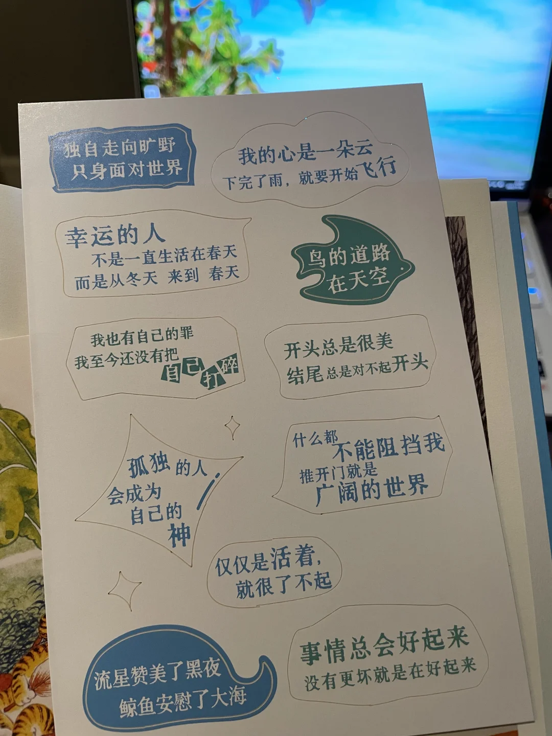 📗书名:《独自走向旷野》 ✏️作者:燕七 · 在阳光下抱一朵最心动的花 做白日梦吧 — 🌟 三叶草结了豆荚 在夜晚崩裂 像星星到处都是 — 🌟 一些孤独像松果落下 一些自由像大雪扑面而来 — 🌟 放下一些 才会看见另一些 什么都不盼望 大雪就开始纷飞 — 🌟 幸运的人不是一直生活在春天 而是从冬天来到春天 — 🌟 什么都不能阻挡我 推开门就是广阔的世界 — 🌟 流星赞美了黑夜 鲸鱼安慰了大海 — 🌟 像大海拥有自己的沙砾 蜜蜂拥有自己的蜂蜜 你知道自己拥有的已很多 已满溢 — 🌟 从这一天开始 青草生长 花树盛开 我们要清澈温暖 无所事事过完一整个春天 ·