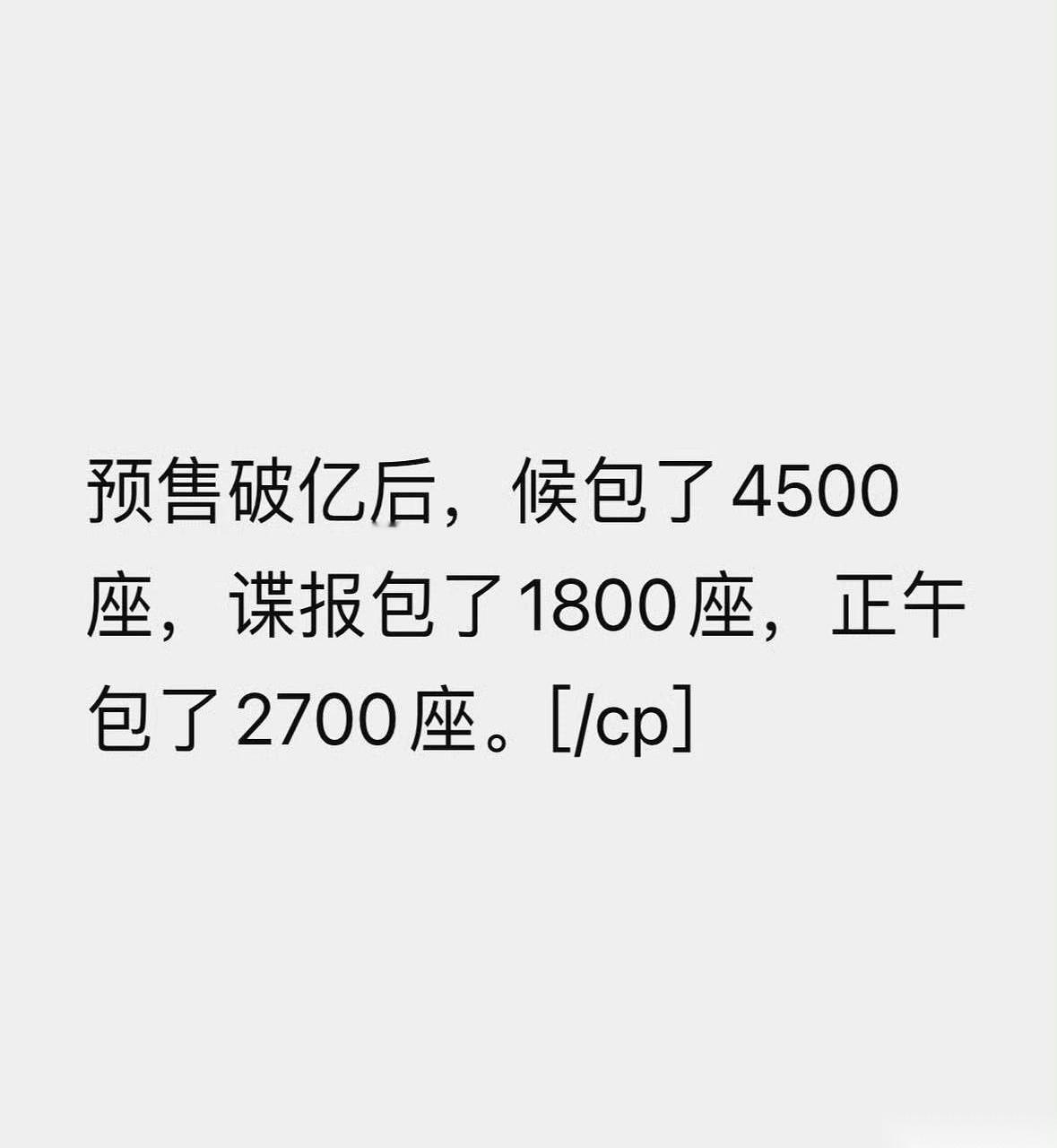 说真的,今天吓我一跳的,不是那个一个亿的预售。 是制片人自己,包了4500场。 你品品,这是什么概念? 自己投钱拍的戏,还没上,先自己再掏一笔真金白银,把影院给锁了。 这已经不是对作品有信心了,这是拿身家性命在告诉你,他赌的这个人,“值得”。 然后,正午阳光。 侯鸿亮。 这几个字的分量,但凡关心点国产剧的,没人不知道。 一个八年没上过网的大佬,为了这部电影,为了这个人,重新登陆了账号。 他们不是友情客串,是真金白银砸了2700场。 圈外人看热闹,看粉丝多能打。 圈里人看门道,看的是这种顶级牌局上的态度。 粉丝的支持,是地基,决定了一座楼能盖多高。 但制片人的豪赌,和侯鸿亮这种顶级同行的亲自下场背书,是直接告诉你: 这座楼,是钢筋混凝土的。抗震八级。 这已经不是一个明星的票房号召力问题了。 这是一个“产品”,获得了市场、资本、和最挑剔的“质检员”三方的S级认证。 这比任何热搜、任何数据报告,都来得更硬、更说明问题。 说明他这个人,在最精明的那群人眼里,到底有多值钱。