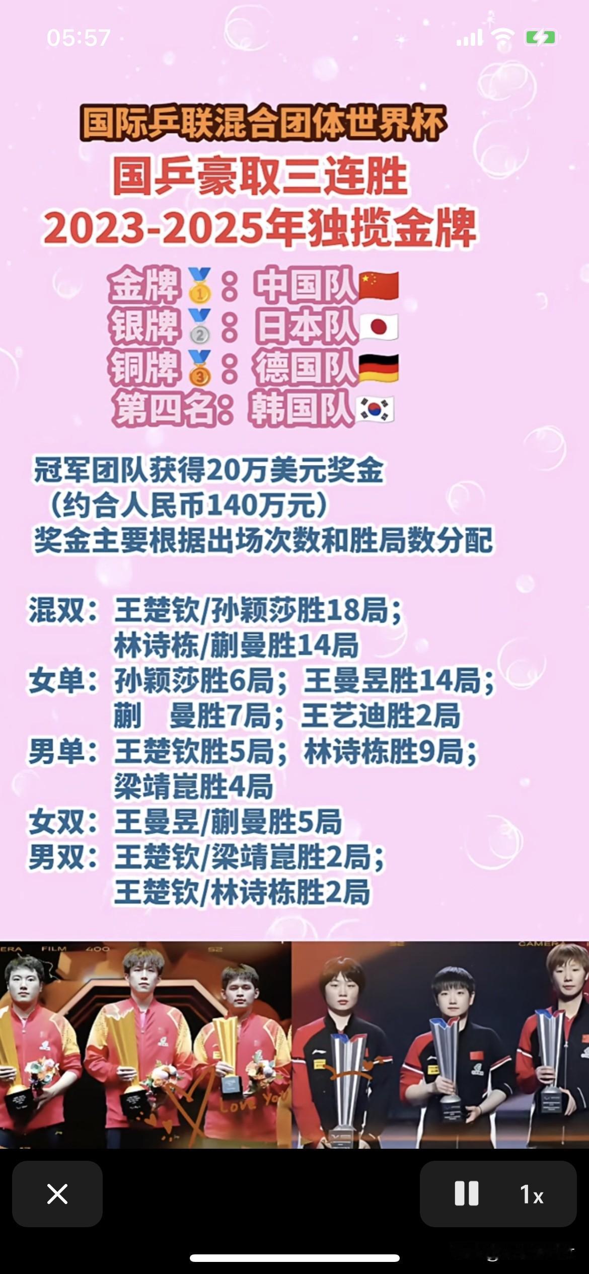 成都混团获胜局数王楚钦最多 女队获胜局数 蒯曼:14+7+5=26, 孙颖莎:18+6=24, 王曼昱:14+5=19, 王艺迪:2 男单获胜局数 王楚钦:18+5+2+2=27, 林诗栋:14+9+2=25, 梁靖崑:4+2=6, 徐瑛彬:0 男女左手打得最多[捂脸] 左手将是宝,可单可双可混 单打王曼昱14局 林诗栋9局